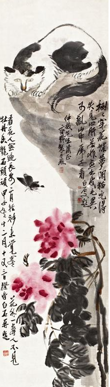 近代以来,猫蝶作品构图逐渐多样化,意象丰富。徐悲鸿、齐白石、张大千、谢稚柳都有猫蝶图流传。
