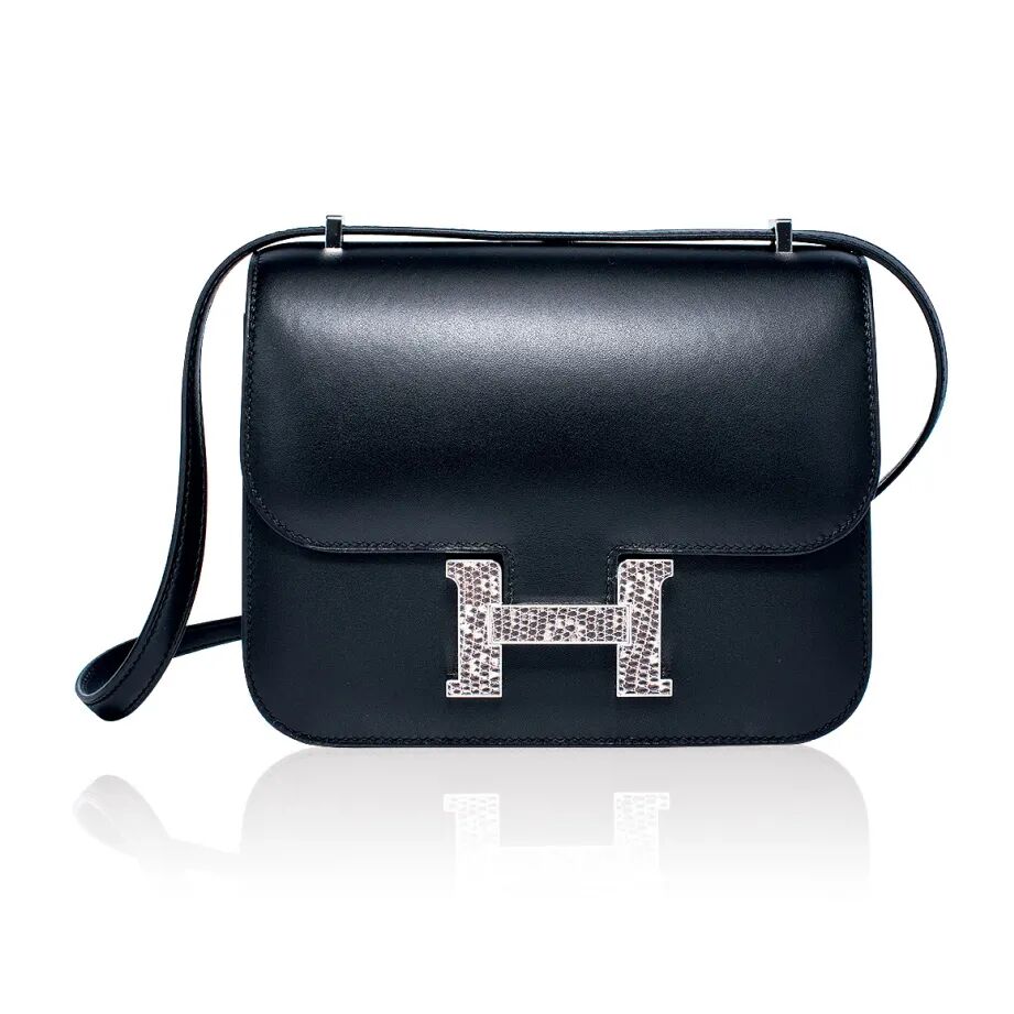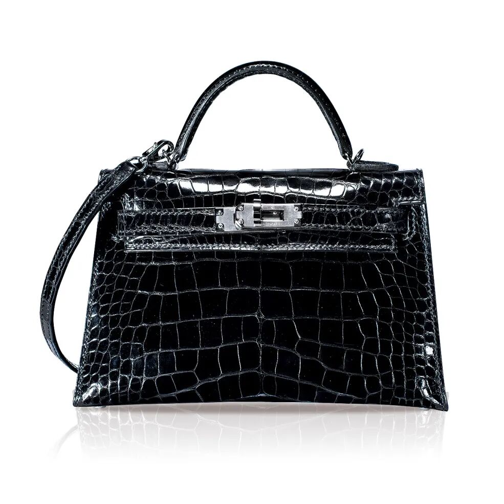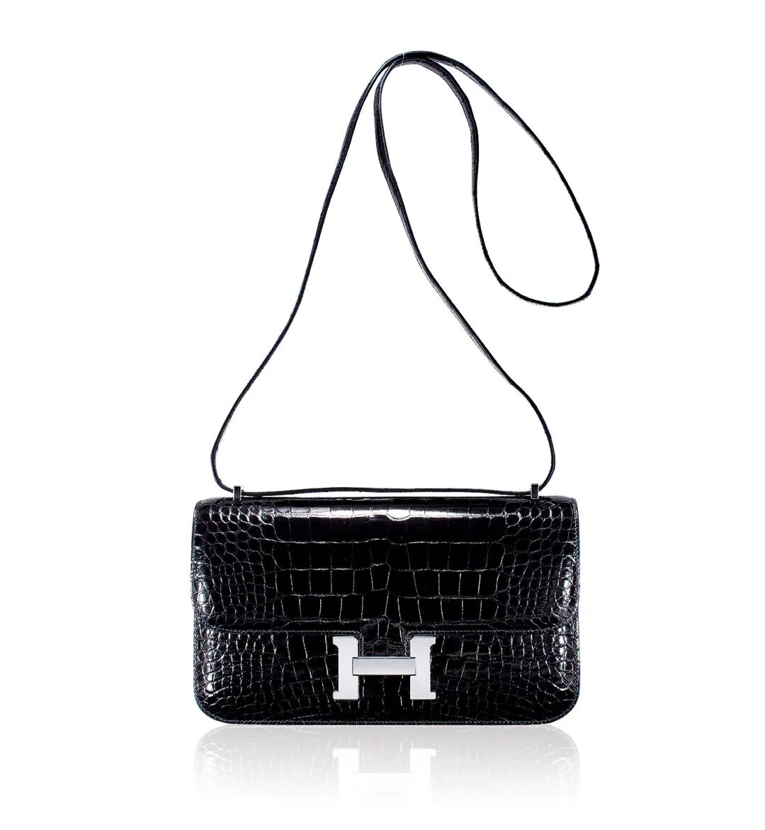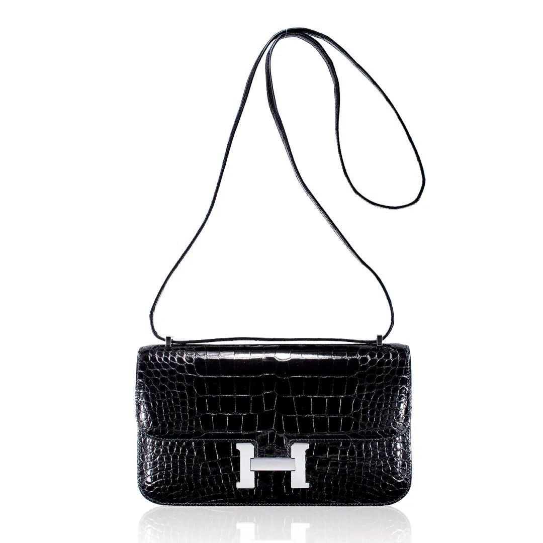 亮面黑色短吻鳄鱼皮 CONSTANCE ELAN 包附银色金属配件