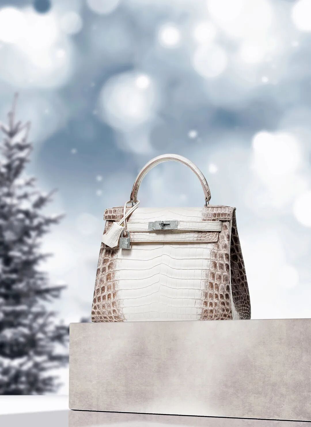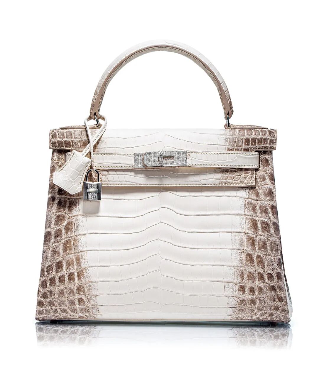 极其罕见雾面白色喜马拉雅尼罗鳄鱼皮 28 公分钻石凯莉包附 18K 白金及钻石金属配件(附原包装盒及证书)