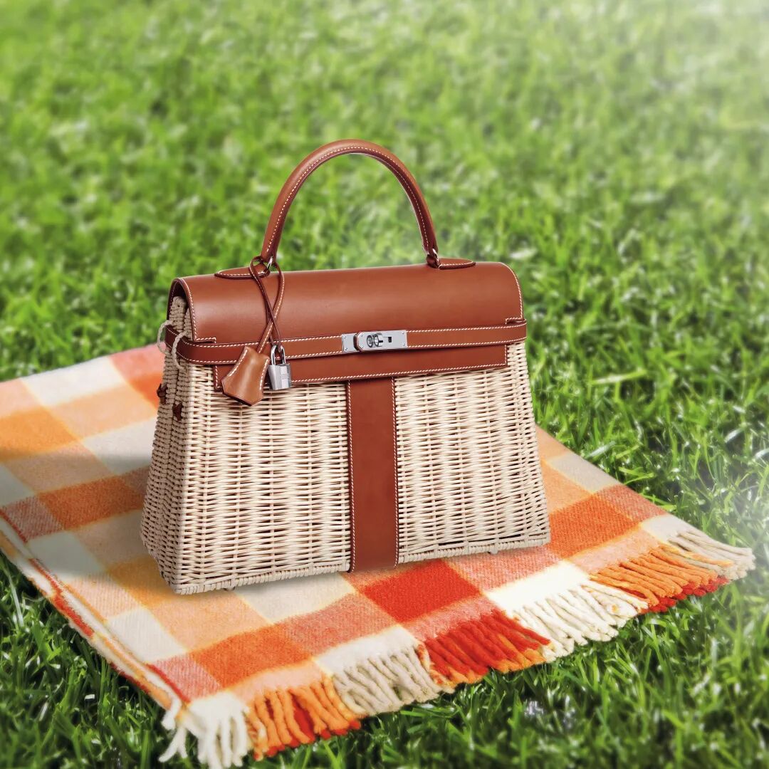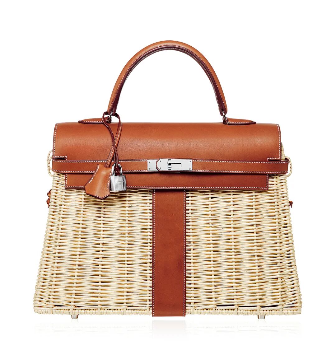 限量版 BARENIA 牛皮及藤条 PICNIC KELLY 包附银色金属配件