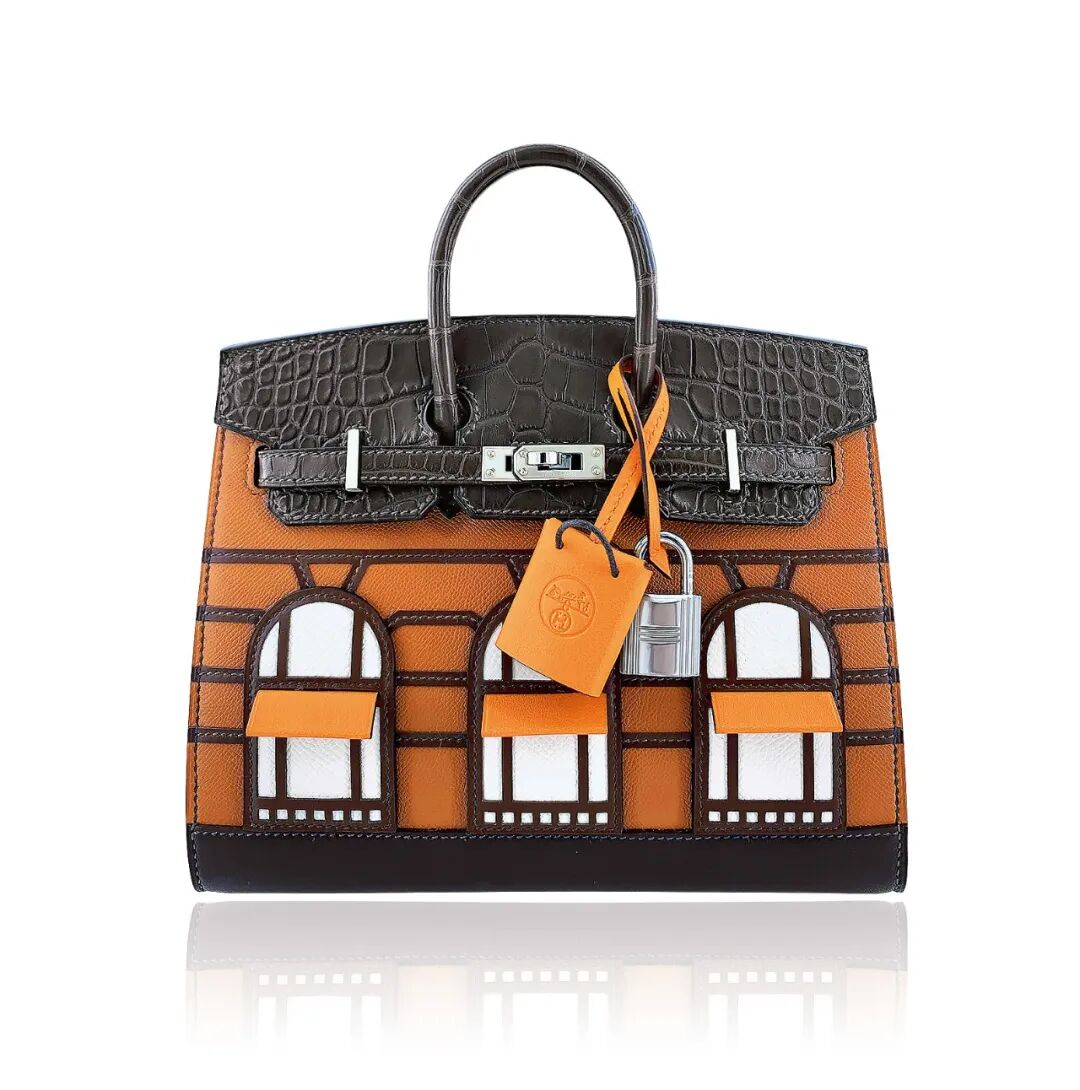 爱马仕于 2019 年尾罕有地推出了这个超级限量版房子柏金包(FAUBOURG BIRKIN),手袋以爱马仕巴黎福宝大道的旗舰店为设计蓝本,精细地缝制出立体的橱窗造型,是一个具有特别纪念价值的珍贵限量版手袋。