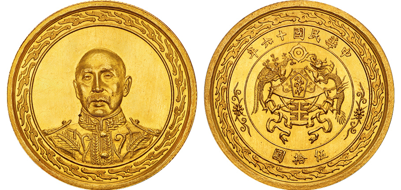 民国十年徐世昌仁寿同登金币,PCGS-SP62,铸压深峻,镜面底板顺滑,人像清晰饱满,文字刻画有力,355万落槌,含佣金408.25万成交。