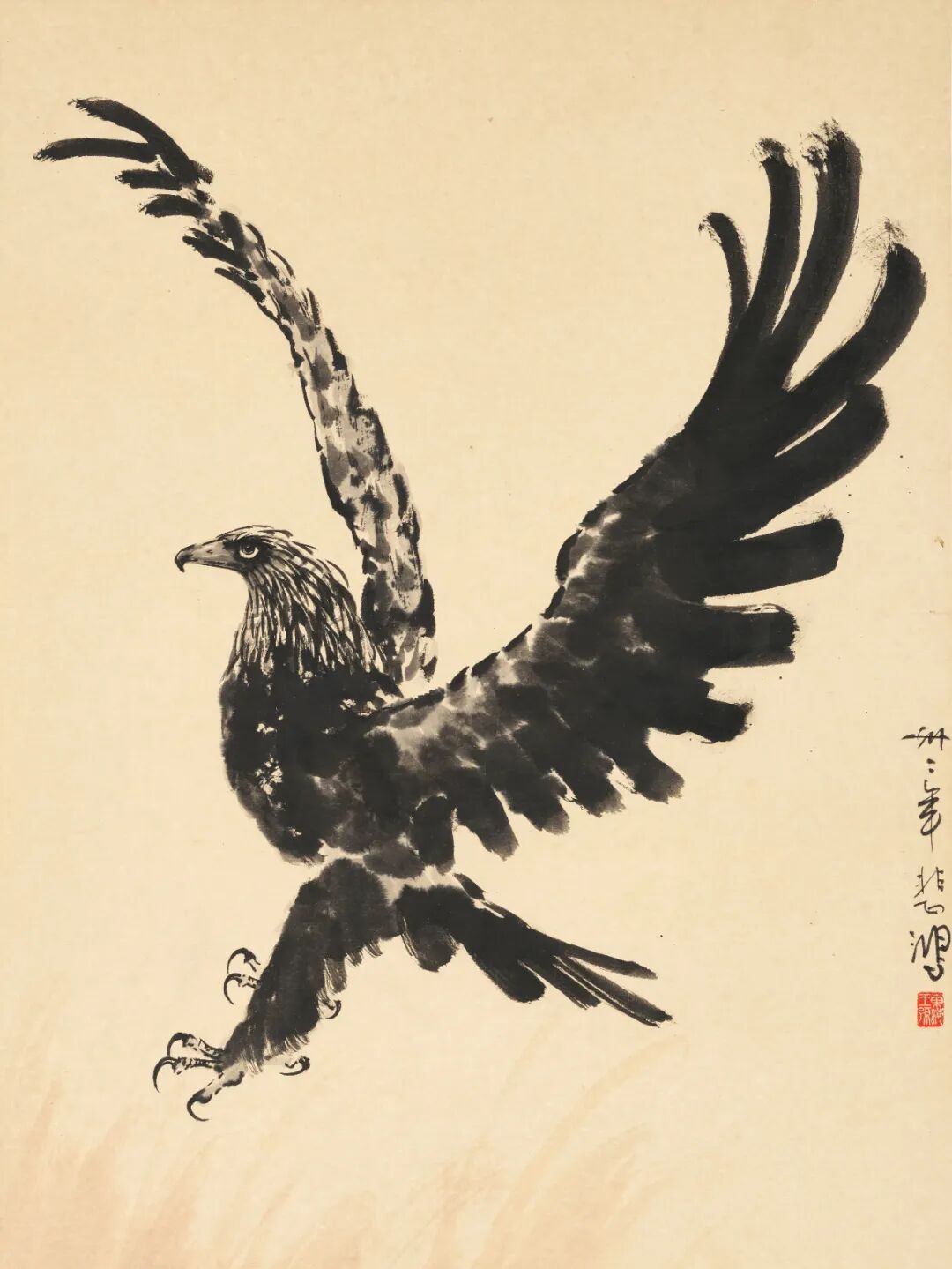 估价:港元 3,500,000 - 5,500,000巴西,里约热内卢,Jean Boghici 画廊,“二十世纪中国绘画大师”,1982年9月16至10月8日《二十世纪中国绘画大师》,Jean Boghici 画廊,巴西,1982年,第35页本幅作品出自巴西私人珍藏,本次 “中国近现代及当代书画” 拍卖将呈献共计五幅来自同一收藏(拍品编号1194-1198);收藏中另有一幅李可染《春雨江南》将于“丹青荟萃:中国书画与新亚书店珍藏网上拍卖”中同期呈现(2021年11月15日至12月1日,拍品编号1762)抗战爆发后,徐悲鸿先随中央大学西迁重庆,旋即于1938年末取道桂林,沿西江东下出国,意欲南下星马。11月中旬,徐氏抵达香港,留港期间,广晤好友,多有餐饮聚会活动,并假冯平山图书馆举办“中国名画展览”,介绍近作。此幅《奔马》即是居港时期作品。画中骏马四蹄腾空,驰驱向前,下绘疾风劲草,马首回顾,画面充满动势,仿佛奔腾跃出纸面。徐氏善于画马,抗战军兴后更是笔耕不辍,因马在中国文化中有坚毅不屈、骁勇善战之美名,画家于作品中多题相关诗句,呼应画面,以画题喻时事,鼓励国人。然细读本幅,不见此种诗句。本幅依题识作于1938年12月20日深夜,是日画家应法国友人邀请赴宴,饮浓咖啡两杯,夜晚则辗转难眠,又自言 “忧绪萦怀”,索性起身作画,写成此幅,不知不觉已然天明。本幅乃饱含画家细腻感情之作。回看彼时画家境遇,除忧愤于国难,亦陷于感情纠葛之中,家国之事,难与人言,一众思绪转换成画笔呈现于纸面,使本幅成为同类题材中之特别,亦成为观者了解画家内心的窗口。![]()