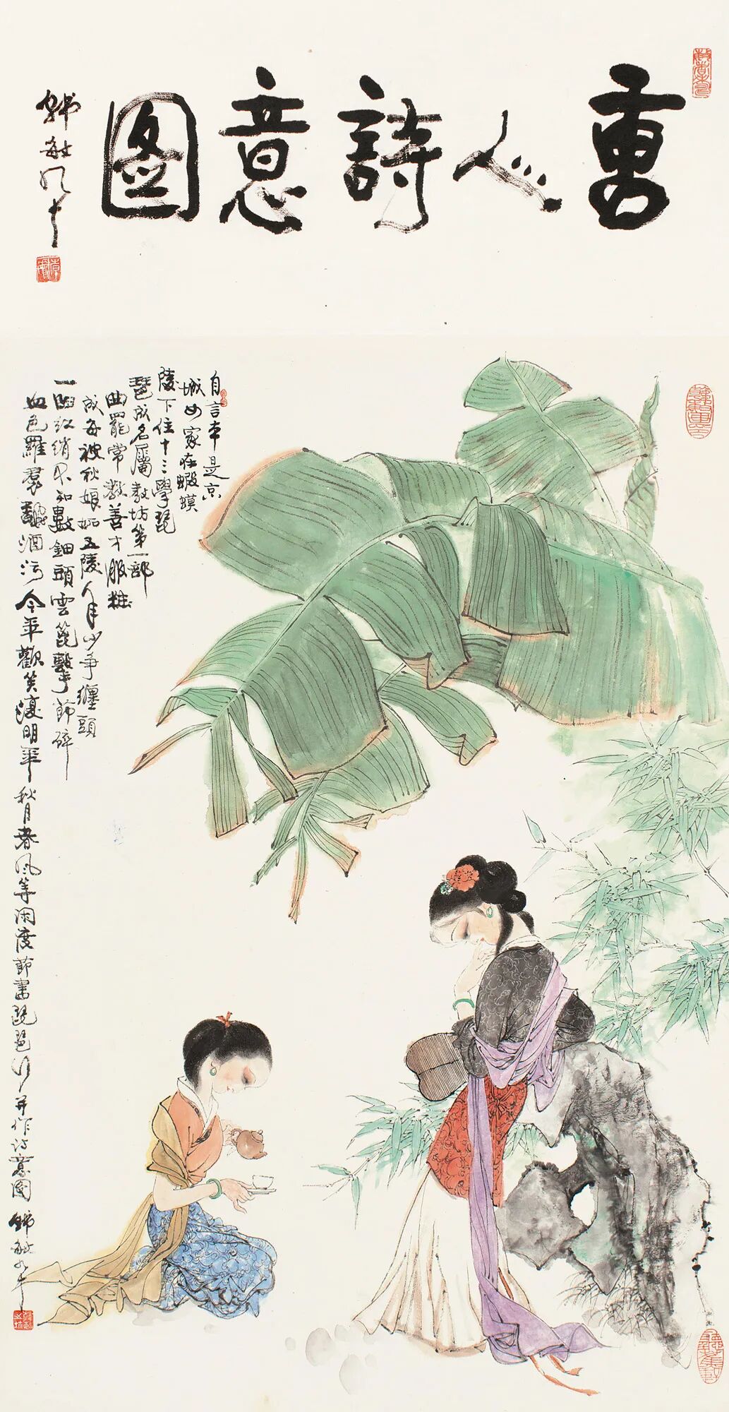 诗堂:唐人诗意图。韩敏九十。钤印:韩敏、敏者寿
