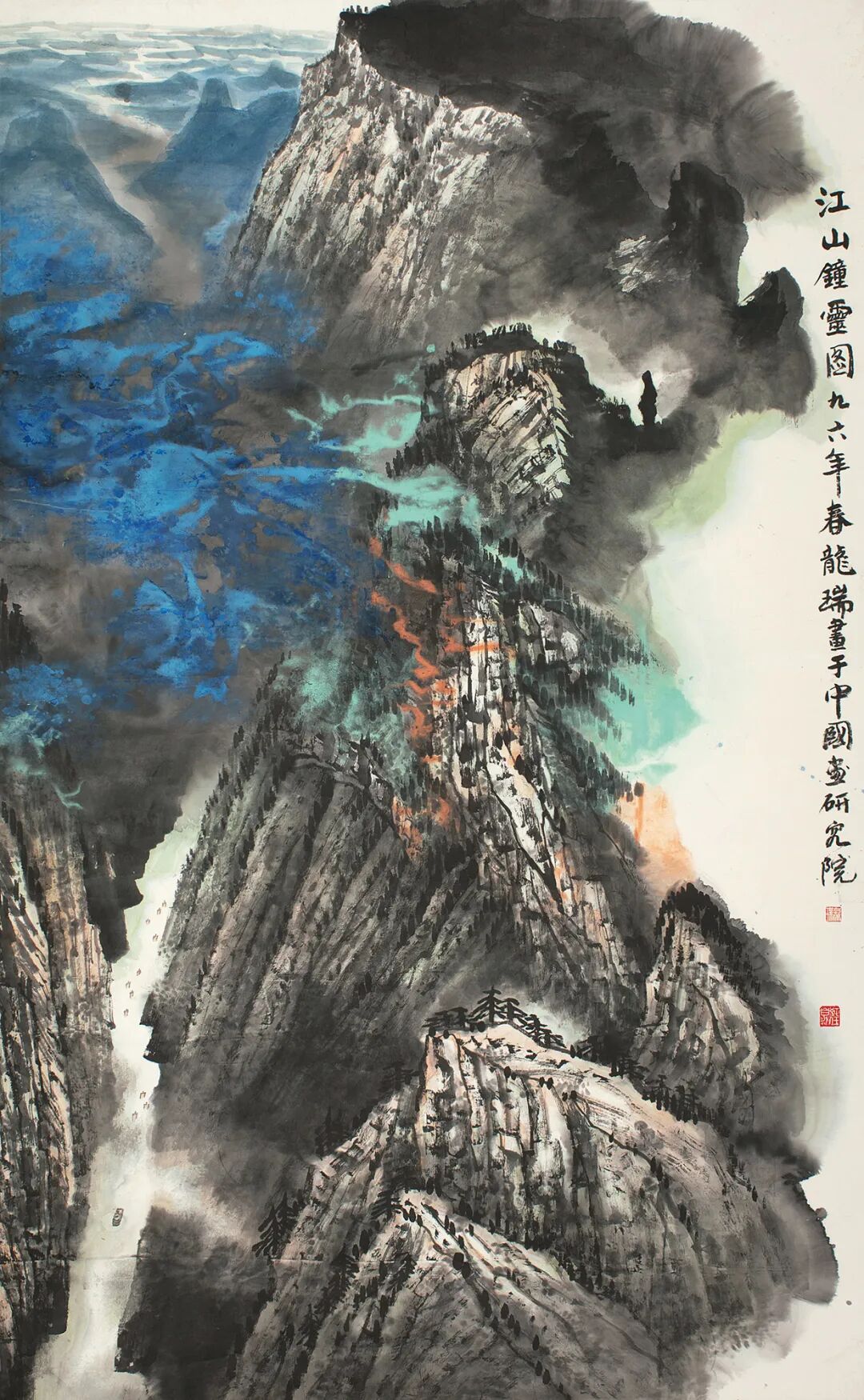题识:江山钟灵图。九六年春,龙瑞画于中国画研究院。