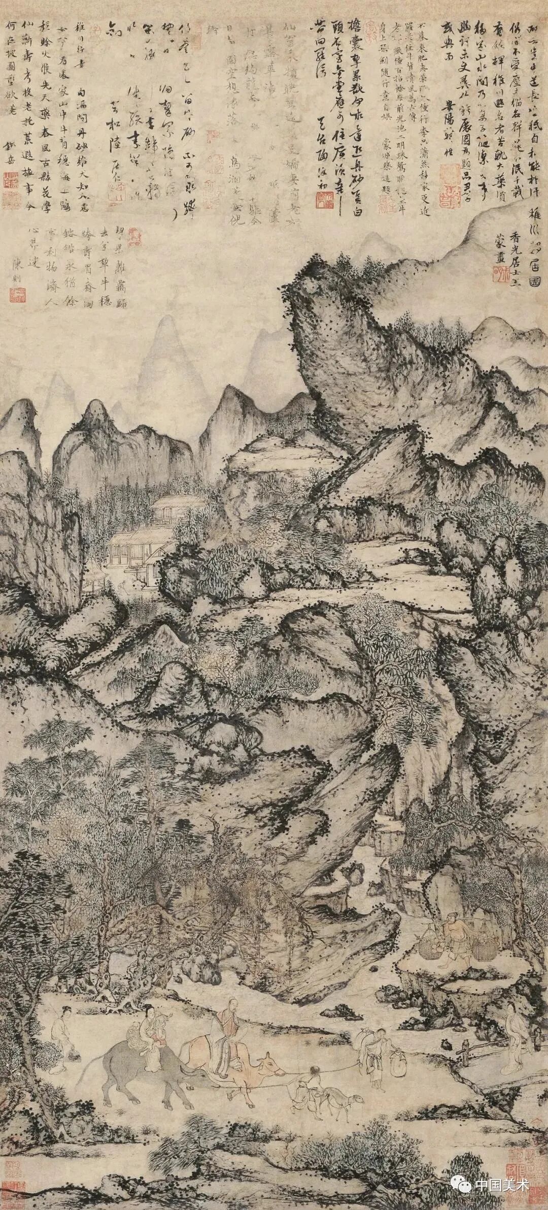 骡纲行旅,画风精密不苟,