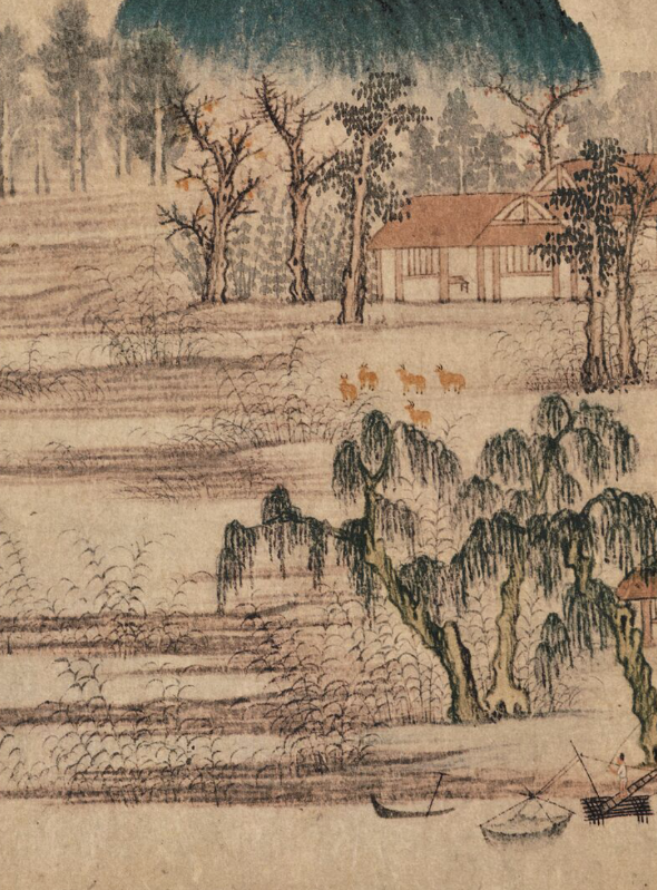 疏林屋舍、洲渚芦荻。