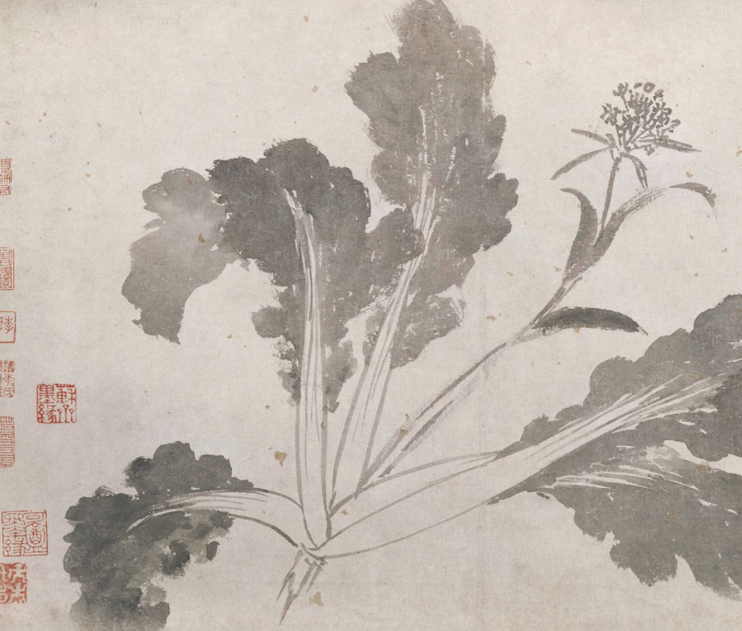 辛夷墨菜图卷(局部)-明 沈周