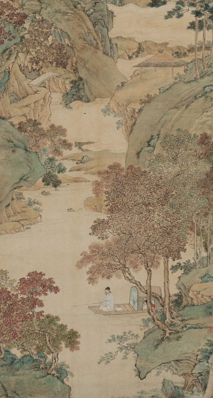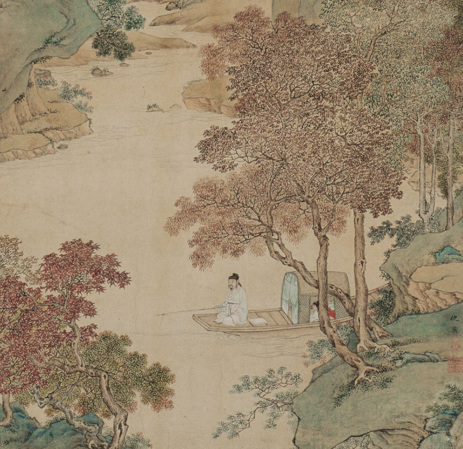 枫溪垂钓图轴-明 仇英