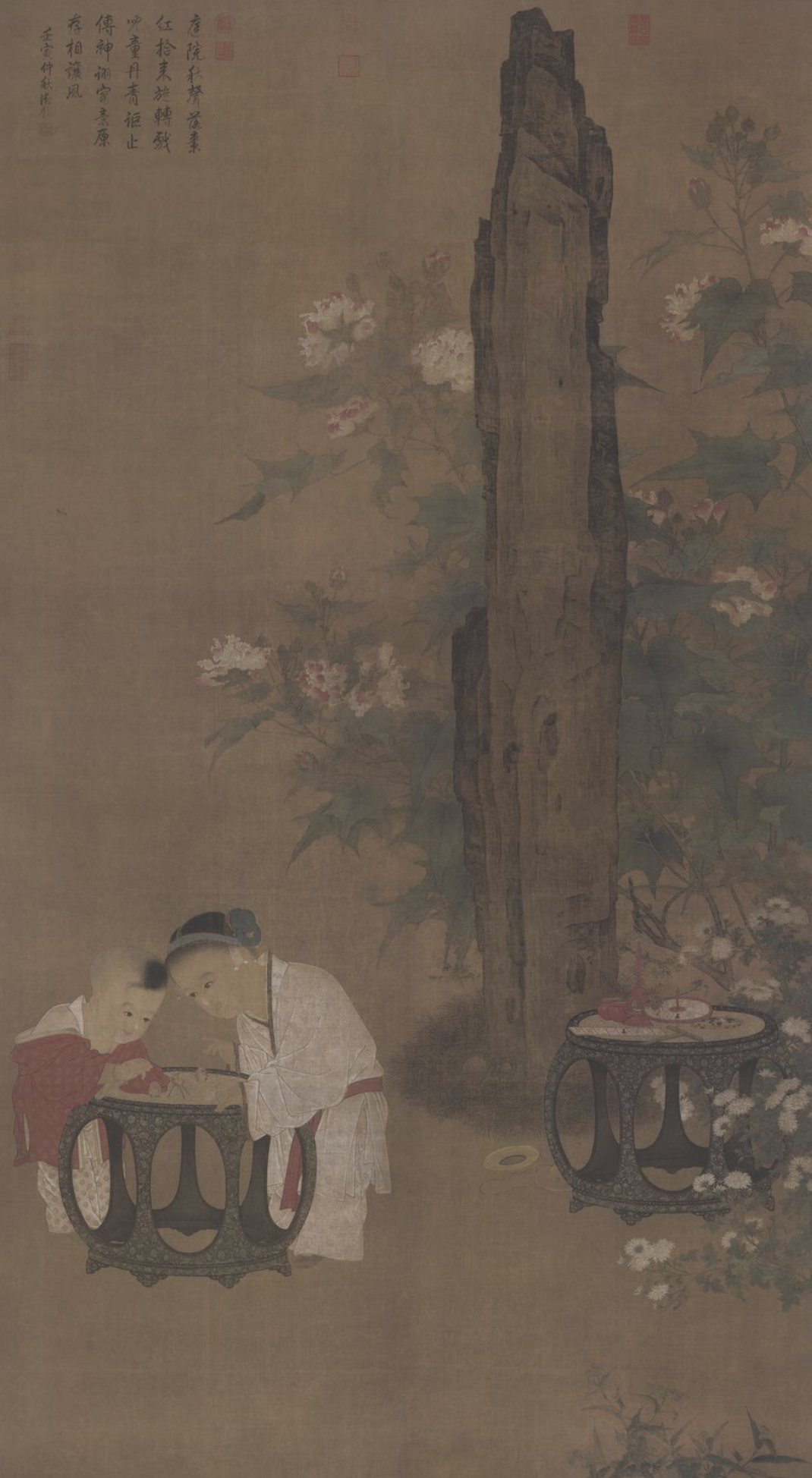 又有一孩童在一旁凝神而立,