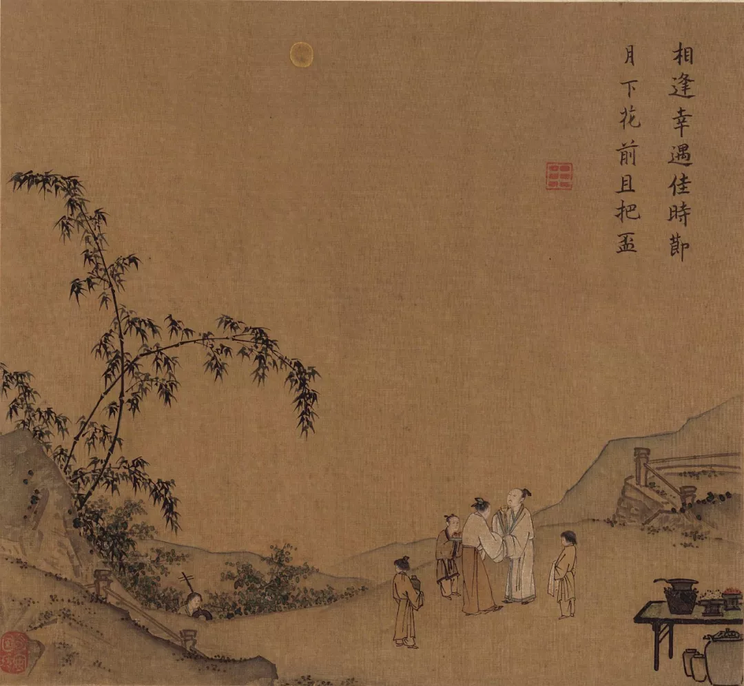 马远《月下把杯图》