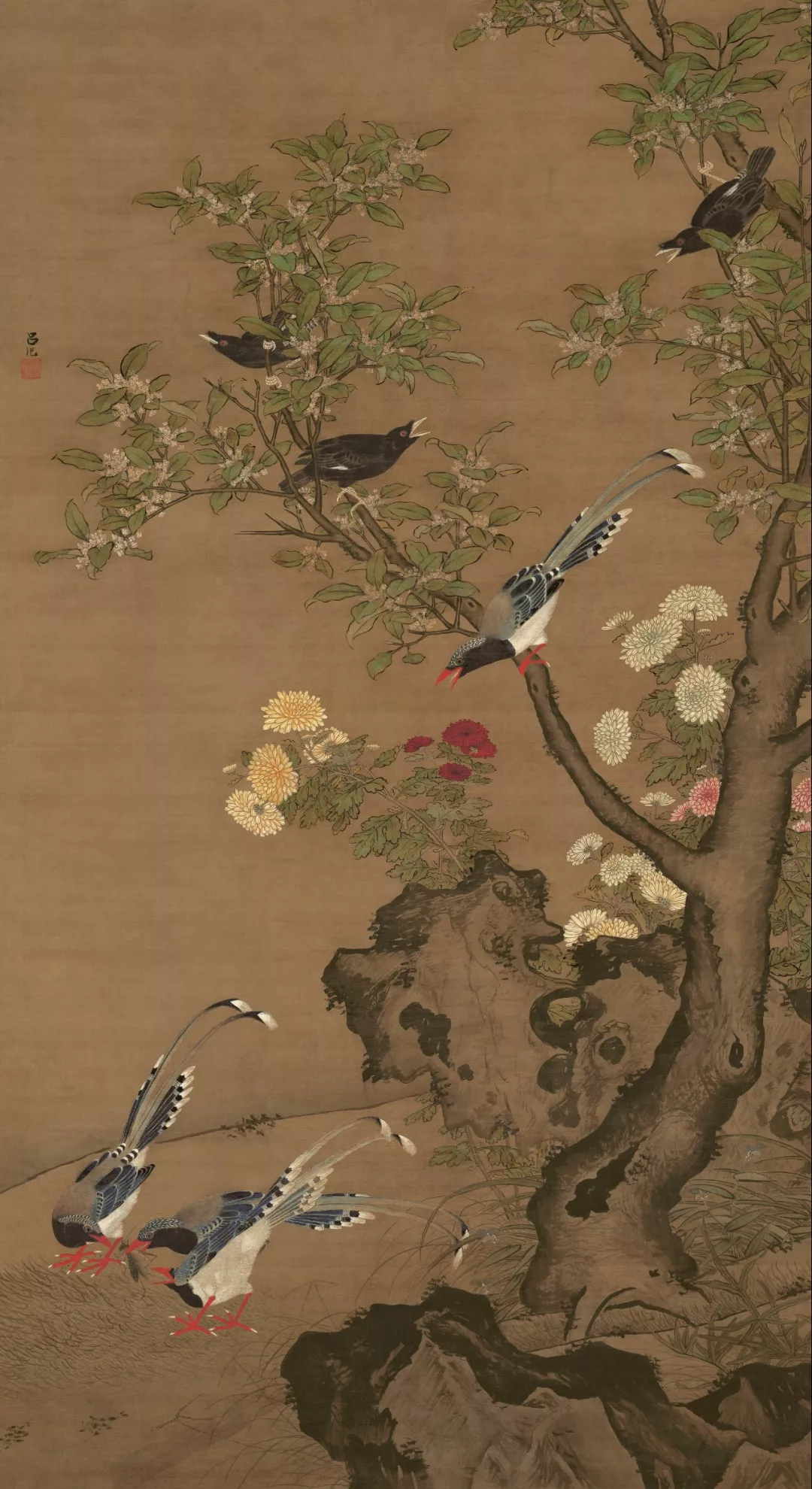 吕纪《桂菊山禽图》