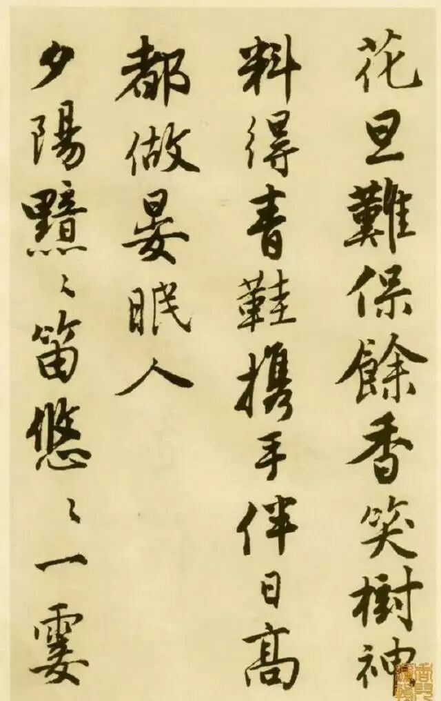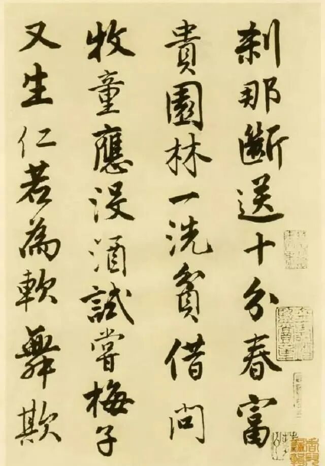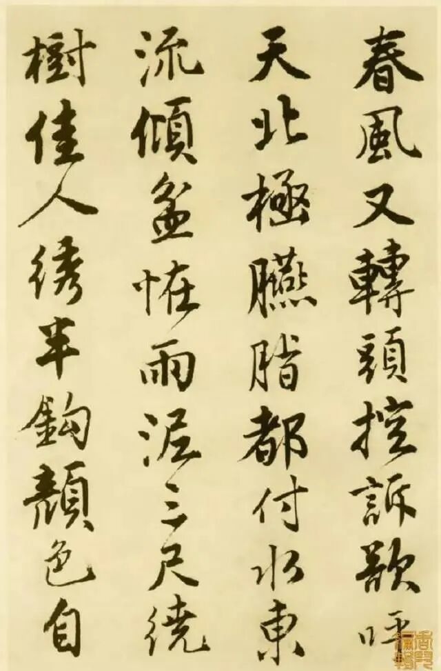 从书风来看,他从颜真卿中,又复归了赵孟,结体俊美婉媚、用笔娟秀流转,并融有唐代李北海的斜长的字姿、有力的笔法和生动的布势,于秀润中见遒劲,端美中见灵动,堪称一件佳作!