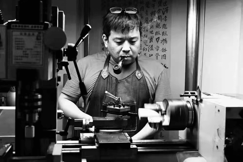 凡是到过海棠芳馆的朋友都知道,他家的地下室中有他制斗的车床,四周堆满了来自欧洲地中海沿岸的“斗料”。然后开始选料、加工、设计、操作、下刀、打磨、剖光等繁复的过程。这还不算,他每年都要去丹麦、日本等世界各地交流学习。其痴迷于此的状态确实如同一个任性的孩子。也正是这种“任性”与“痴迷”才成就了徐海的诸般“手艺”。砚铭、刻字、刻铜,徐海每一天“放下条帚拎扫帚”、乐此不疲地忙碌着。从“工匠”的技术到艺术家的创造,在他眼里并没有“泾渭分明”的鸿沟。正像他所侍弄的那一架房前的海棠花一样,他即是一位剪枝、施肥、浇灌的花农,同时,又是一位花儿怒放时的第一位看花人和欣赏者。