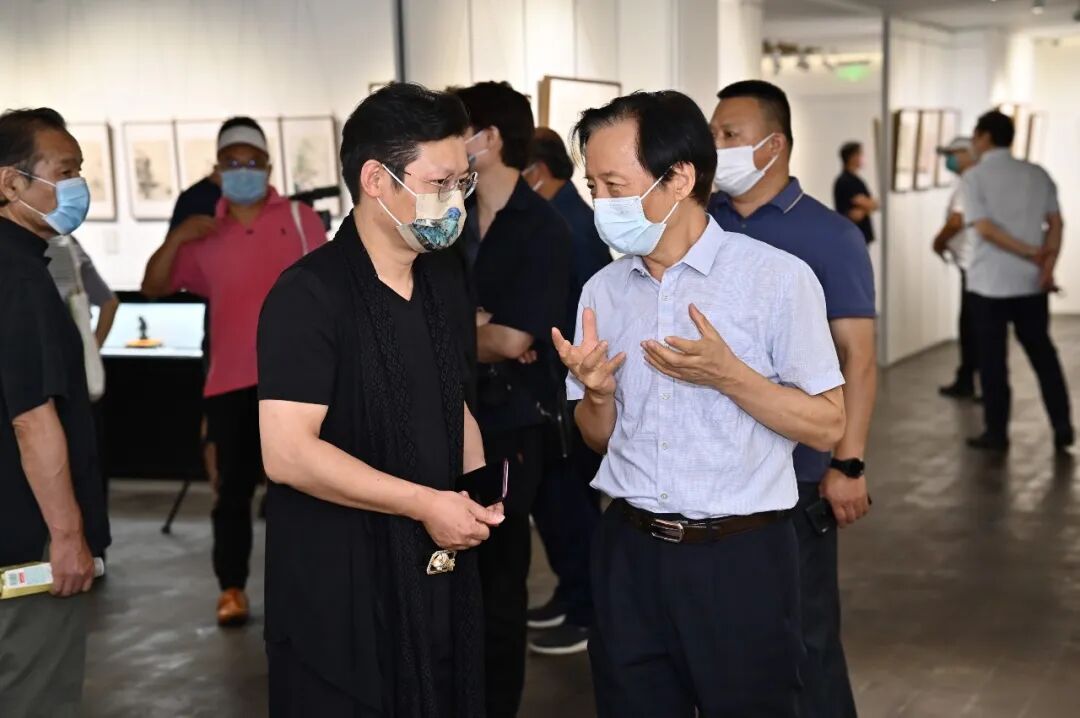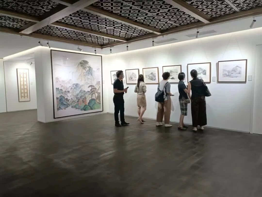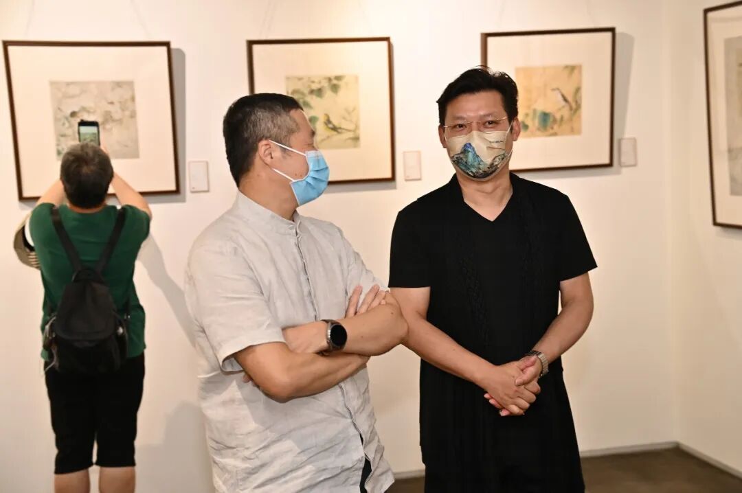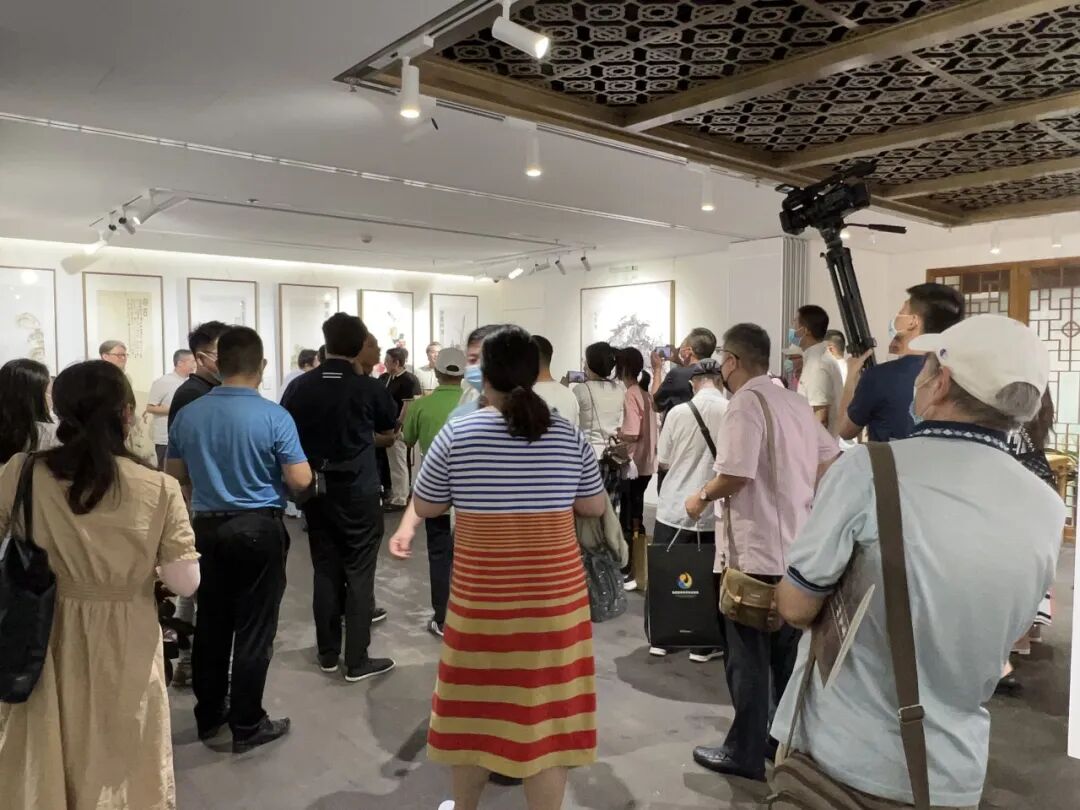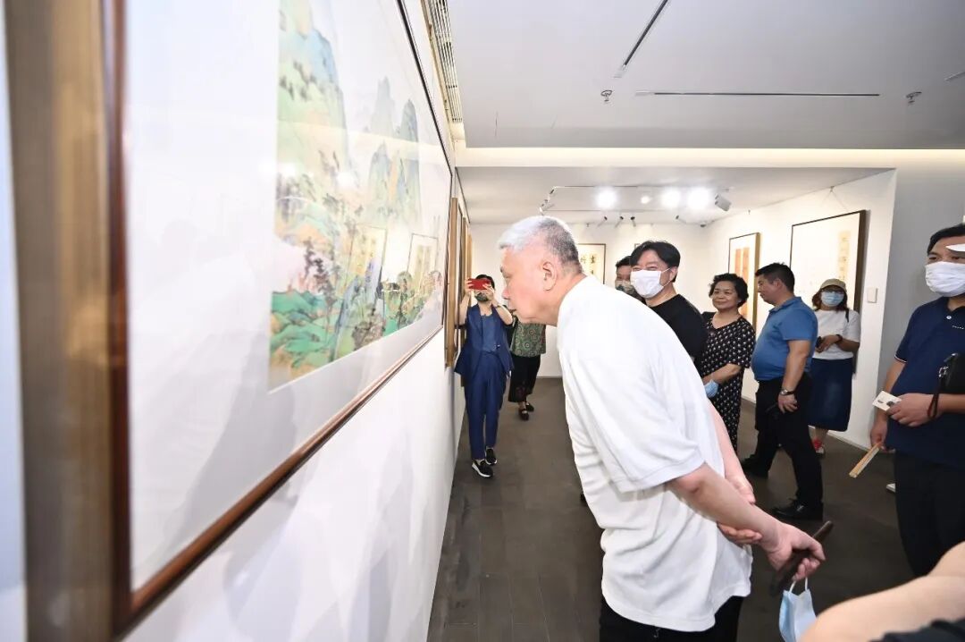本次共展出山水、人物、花鸟、含工兼写的画作近170件,书法、篆刻、 刻石作品约20件。展览表现题材广泛,呈现形式多样,笔墨技法丰富,既有对传统画风的传承,又有对时代审美的探索。当天下午,文化部原副部长、中国艺术研究院名誉院长王文章先生,中国文联副主席左中一先生,中国报业协会理事长张建星先生,荣宝斋有限公司党委书记、执行董事赵东先生,荣宝斋党委副书记、常务副总经理范存刚先生,中国艺术研究院书法院院长管峻先生,中国曲艺家协会主席姜昆先生,收藏家、古董鉴赏家马未都先生,中华文化促进会副主席张玉文先生,作家王干先生,中国书法家协会理事、楷书委员会委员洪厚田先生,中国书法家协会楷书委员会委员王登科先生,中国艺术研究院书法院外联部主任阎揆先生,中国书法家协会行书委员会委员陈胜凯先生,书法家王岚女士,荣宝斋书法馆经理宋涛,航天工程大学博士李建韬女士,歌唱家江涛先生,女士白雪,付笛生、任静夫妇等文艺界友人出席了此次开幕式。马未都先生观看展览后对作品精静之气表示惊讶,能在当今这个时代静下来绘制这样的作品,是难能可贵的,它不仅体现了一个画家的功力,更重要的是体现了画家的心态,是画家不懈追求艺术理想的坚持。王登科先生认为这是既有传统底色又有时代新意的展览,他用孙过庭论书法的一句话评述其作品:古不乖时,今不同弊。