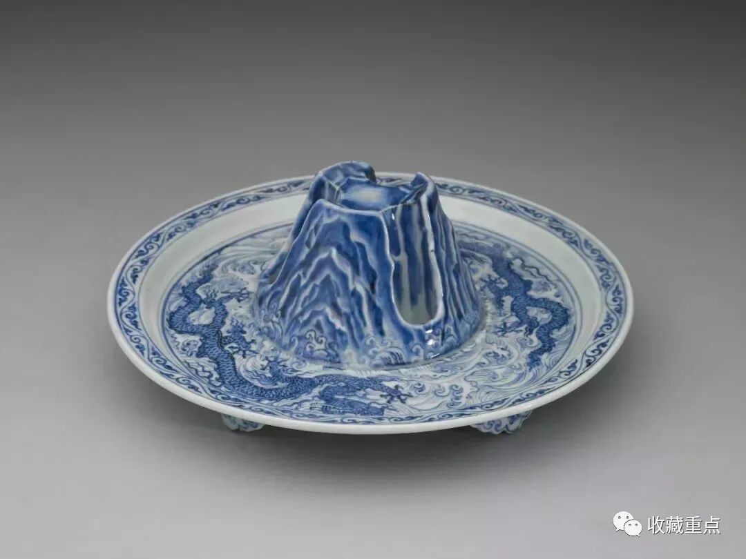 晕散与结晶斑,是青料粗粝所致,如以强光照射可明显看出,结晶斑实际上就是青料中斑斑块块呈颗料状的锈斑,原因极有可能是因铁质高所致。随着苏麻离青的引进,中国青花瓷烧造史出现了自元代末期青花瓷成熟以来的第二次发展高峰,尤其是宣德时期的青花瓷与中国传统文化有机的结合而被民间称之为“青花之王”。明代宣德后实行海防闭关政策,苏麻离青的进口渠道堵塞,因此,到成化朝后苏麻离青料的青花鲜少看到。成化以后,苏麻离青这种青料很少再大批量引入,青花瓷中的青料逐渐被回青等代替。![]()