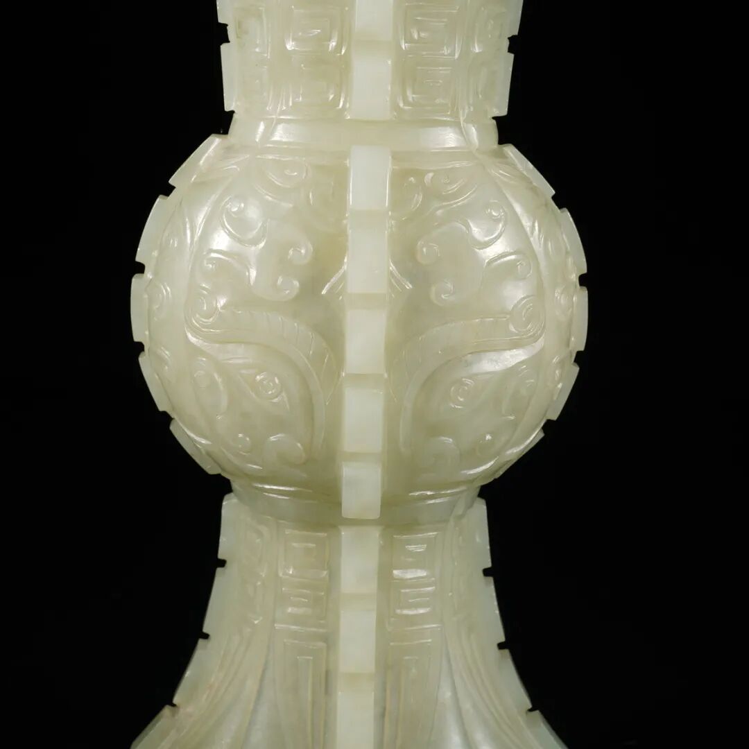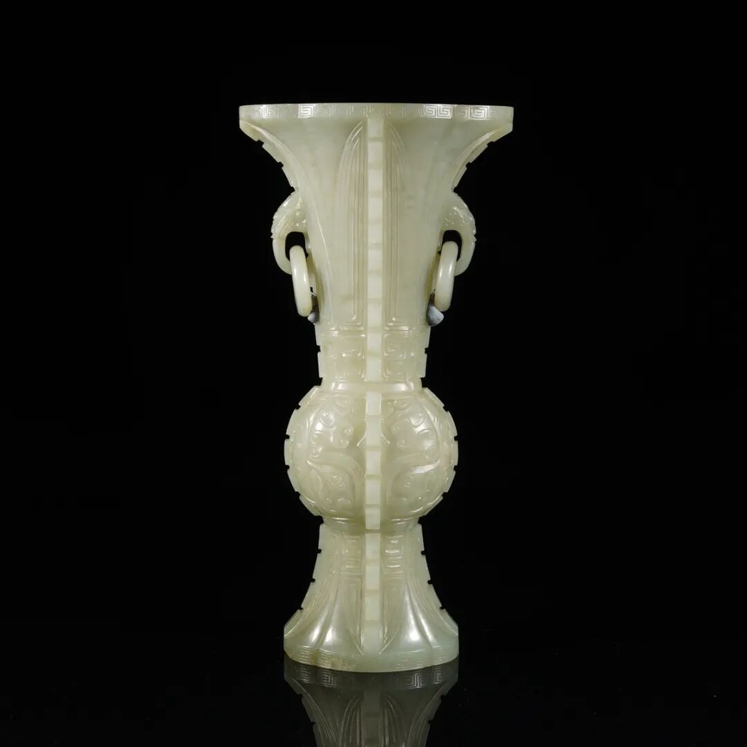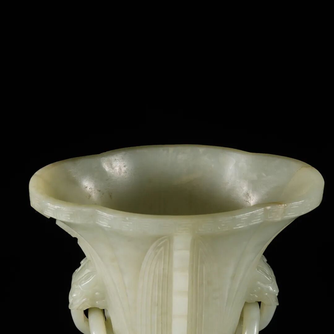 清·玉雕兽面纹环耳觚