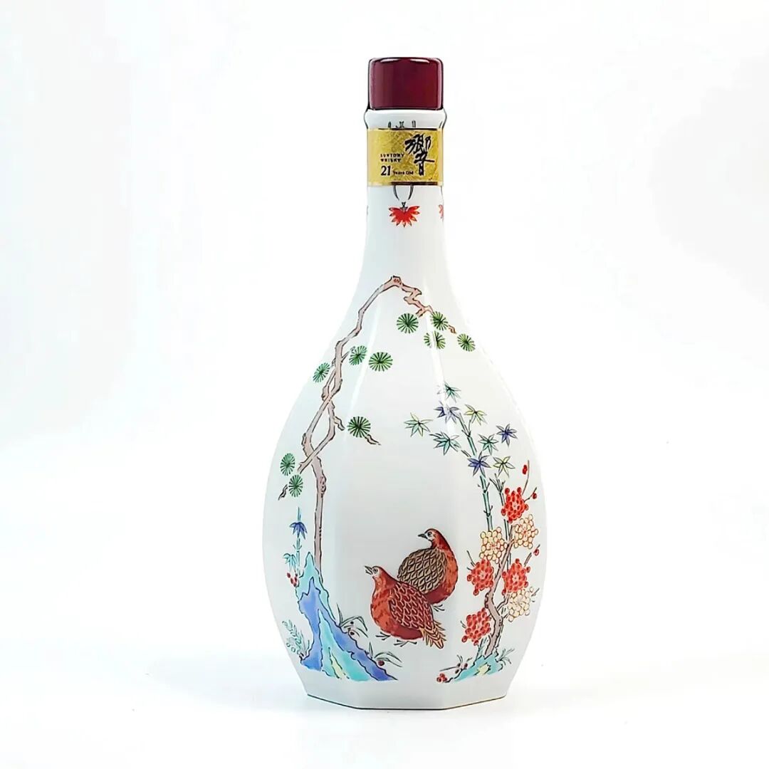 说明:本款响21年有田烧,拥有一个古朴雅致的名字“色絵松鹤梅鹑文八角瓶”。在呈八角形的优美细首瓶上,用柿右卫门式的颜色鲜明地绘制了松、鹤、梅等吉祥图案,是有田烧陶瓷系列的年份威士之一。