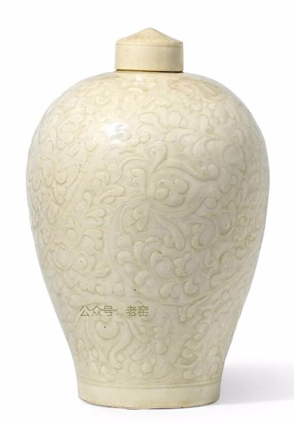 北宋/金 定窑白釉刻牡丹纹梅瓶