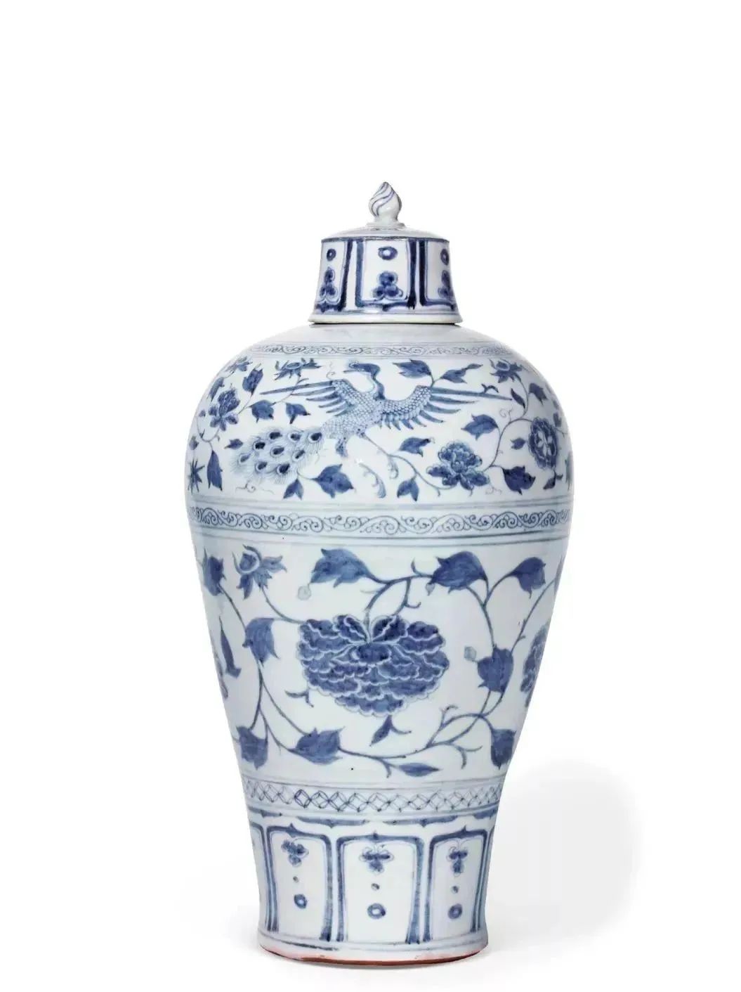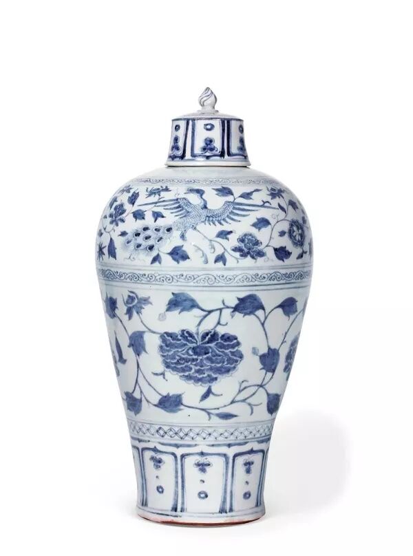 元 青花孔雀牡丹带盖梅瓶 成交价:1667万人民币