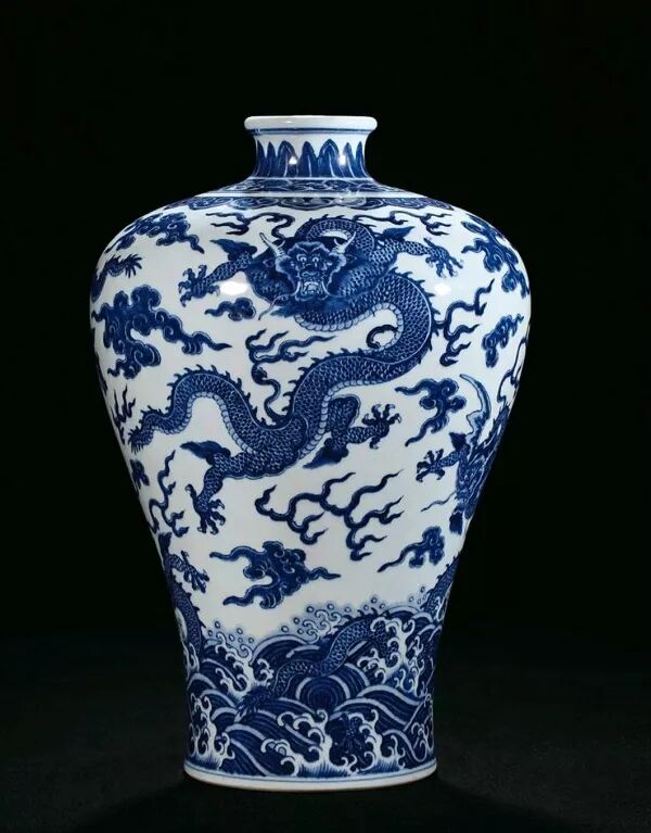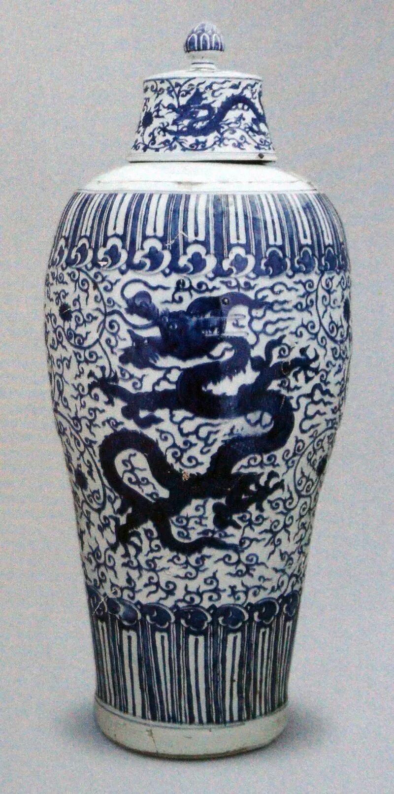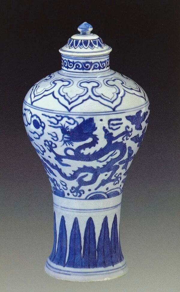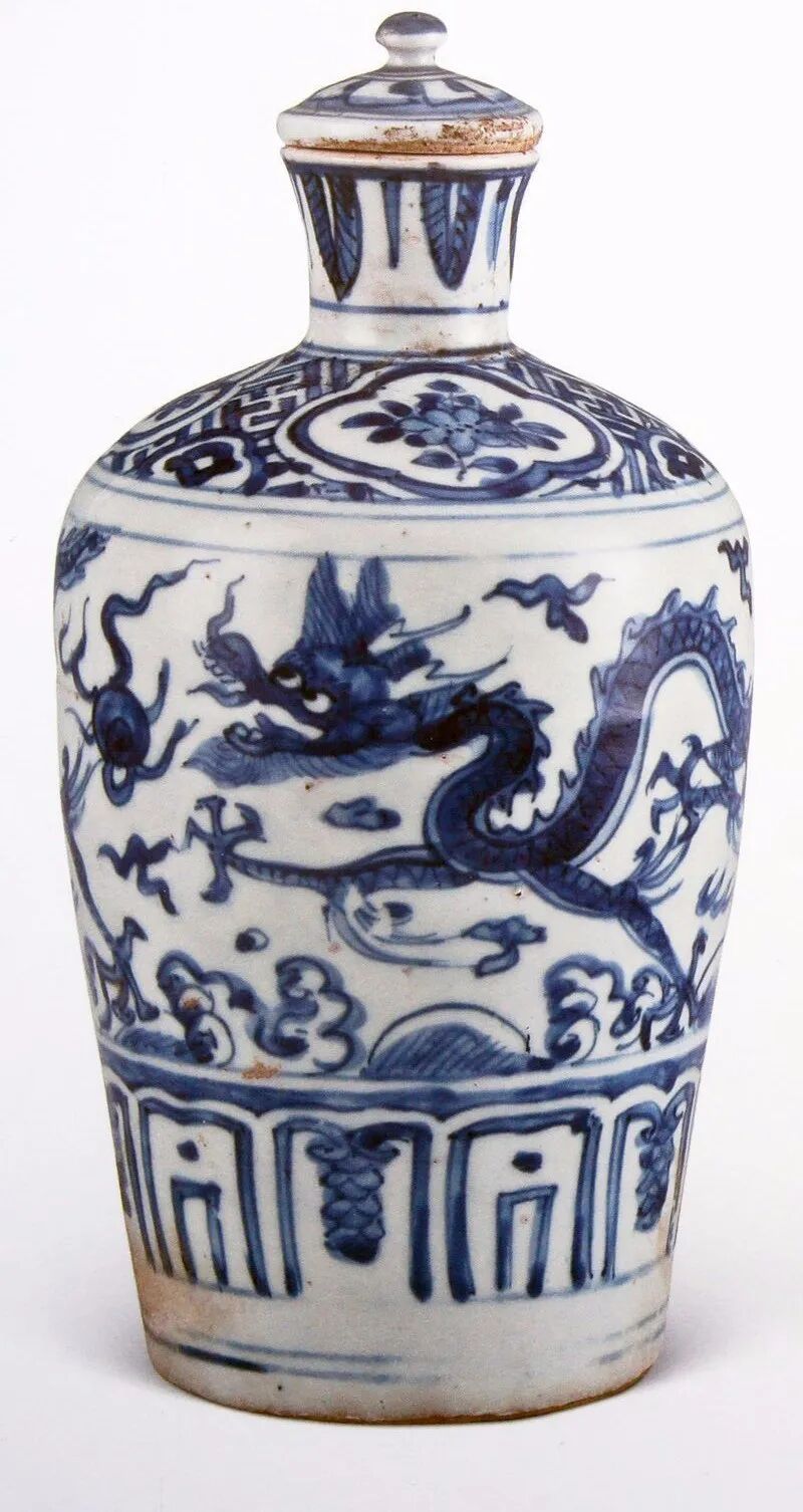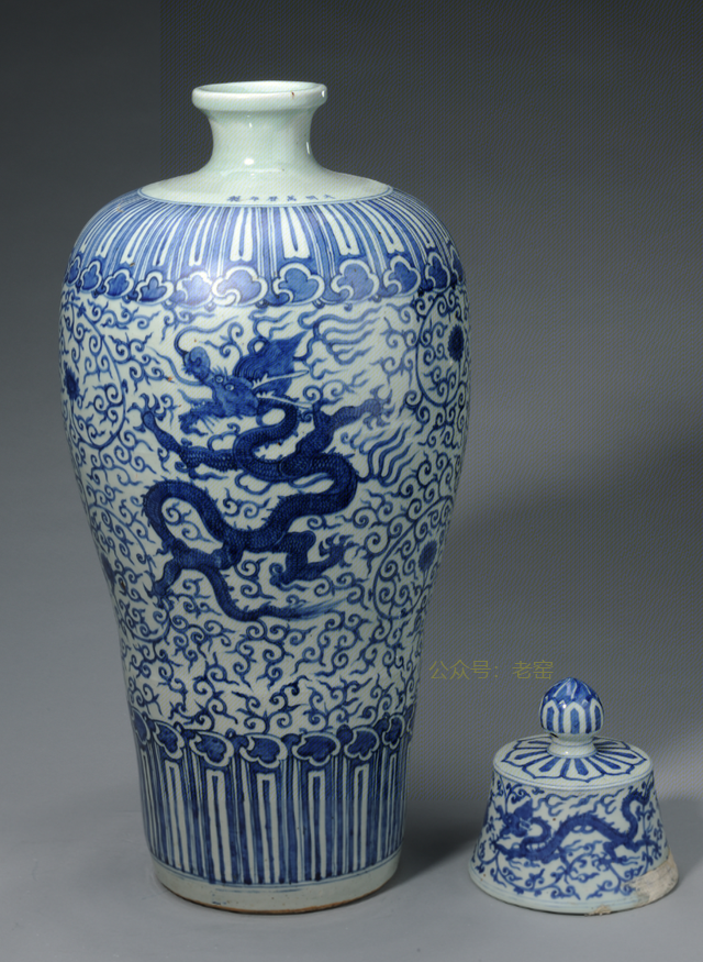 明代万历带盖青花云龙纹梅瓶,北京明定陵玄宫后殿出土