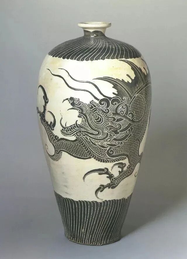 白地黑彩剔刻龙纹梅瓶