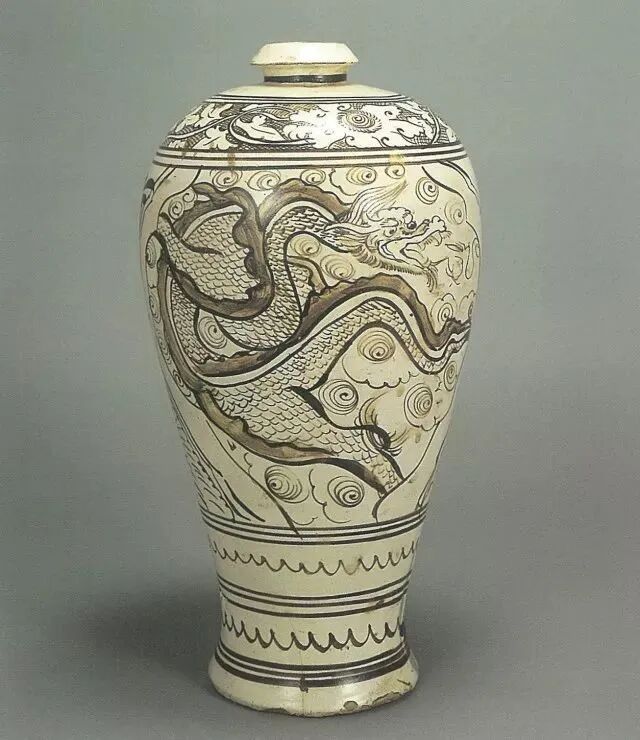 白地褐彩龙纹梅瓶