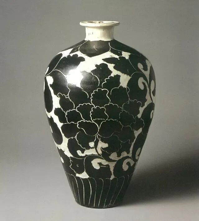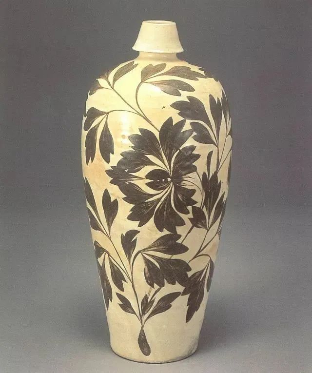 白地黑彩剔刻牡丹纹梅瓶