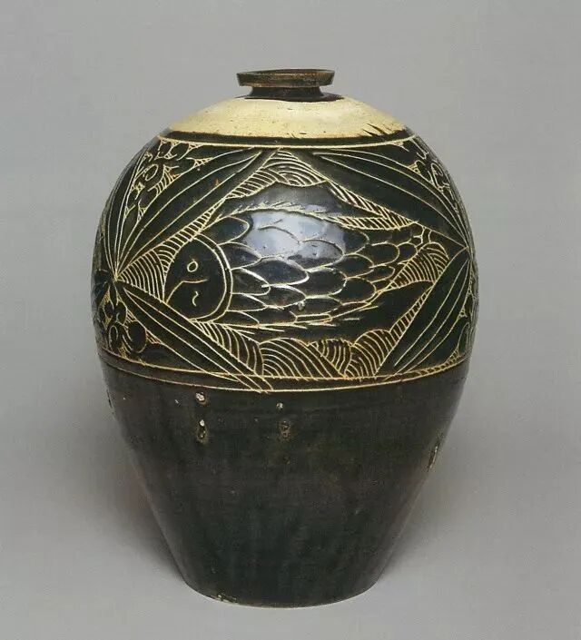 黑釉刻鱼纹梅瓶