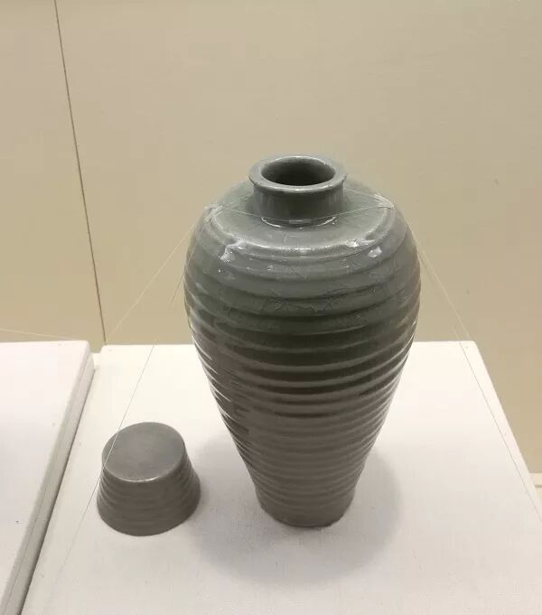 青瓷带盖梅瓶