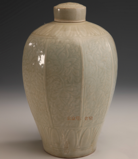 南宋 青白瓷印花带盖八角梅瓶