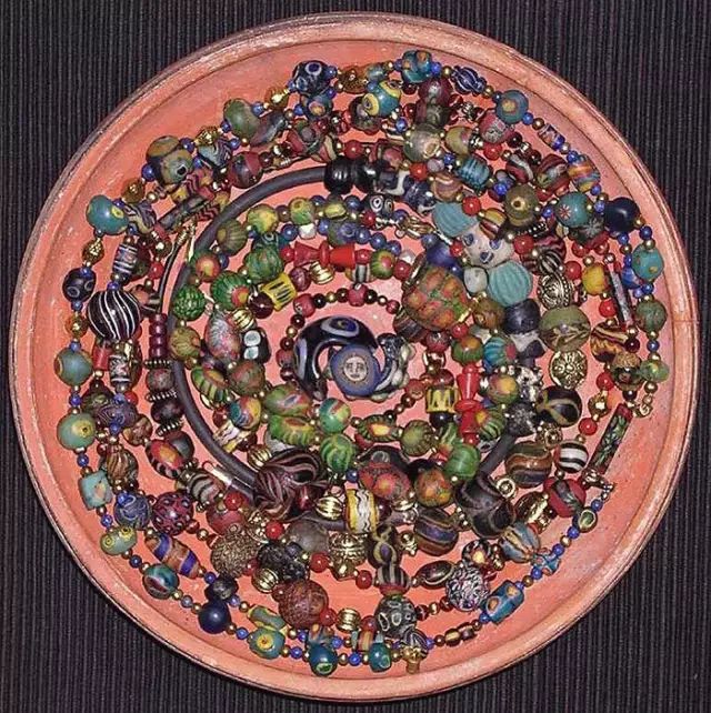 彩色的镶嵌玻璃珠大约出现在公元前10世纪初的地中海沿岸,到公元前6世纪至前4世纪时成为中亚地区最为流行的珠饰,关注公众号古玉虫中国境内的这种镶嵌玻璃珠是春秋末期突然出现的,其外观和材料成分都和西亚地区类似的镶嵌玻璃珠相同,所以学者都认为,中原地区前所未有的蜻蜓眼是西方传入的贸易品。