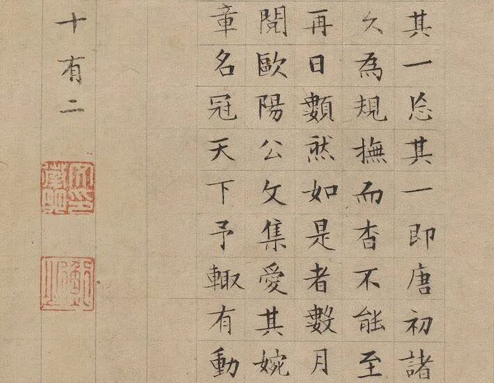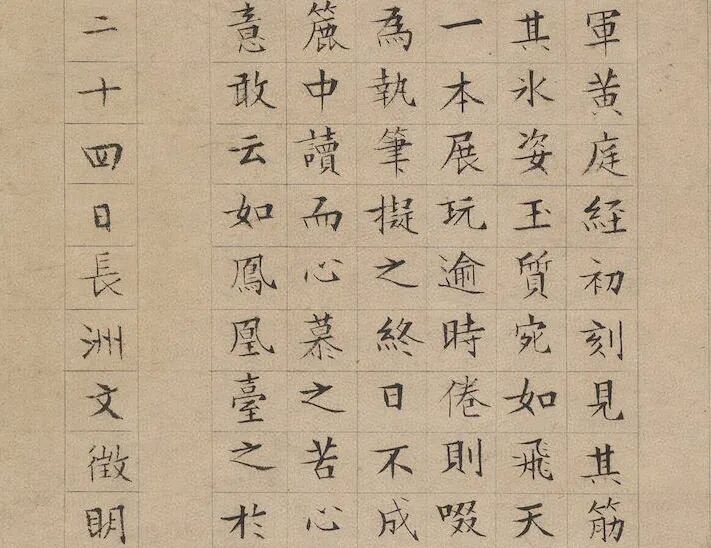 文徵明以极精秀的小楷抄录欧阳修的《醉翁亭记》,并在抄录原文后,以长跋叙明他仿王羲之风格作此小楷的个中原委。全文精整挺秀,铁画银钩,用笔多偏锋,锋芒外显,但结体紧密,用笔稳健精整,是其传世小楷之极品。