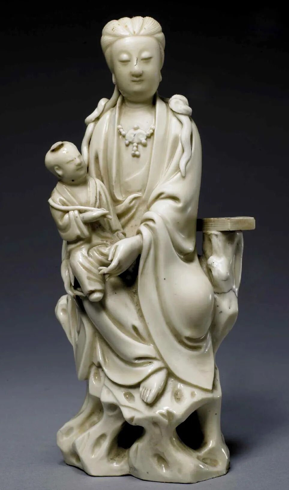 中标者是有“中国收藏大亨”之称的刘益谦,也就是用2.8亿拍下鸡缸杯的那位。仅短短一年后,2017年佳士得秋拍,同样出自明代何朝宗之手的德化窑白釉渡海观音便以1633万元成交,创下德化白瓷拍卖世界纪录!何朝宗是谁?德化白瓷那么多,为何只他的作品屡屡拍出天价,成为众藏家必争之地。何朝宗是明代德化著名瓷雕大师,被喻为“瓷圣”。他最擅长用德化当地特有的白瓷制作瓷观音。在古代就价高难得,《晋江县志》载:有何朝宗者,善制陶像,人争宝之。胎骨匀实,釉色洁白,美如脂玉,触之如美人肌肤,细腻柔润,远观如皎蛟月光,自带光华。