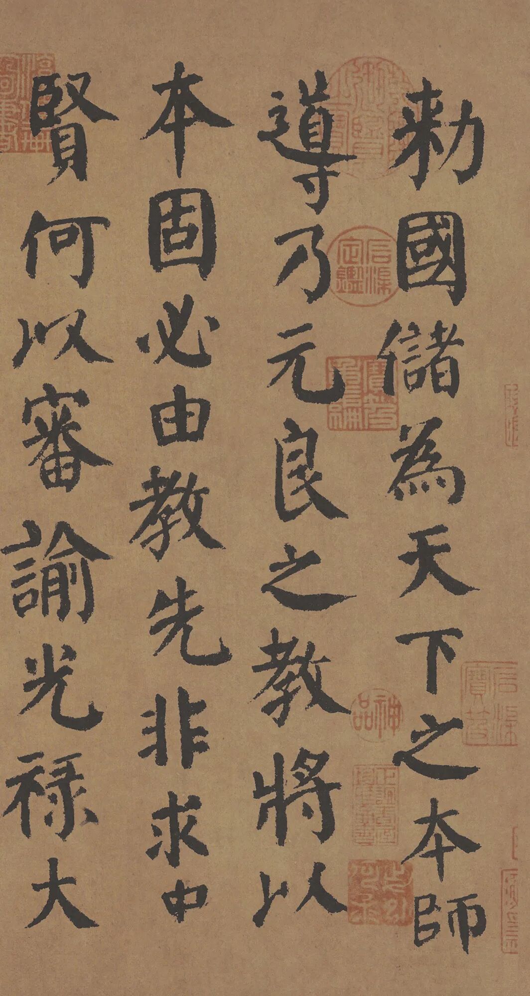 颜真卿最擅行、楷。其初学褚遂良,后师从张旭,得其笔法。其正楷端庄雄伟,行书气势遒劲,创“颜体”楷书,对后世影响很大。