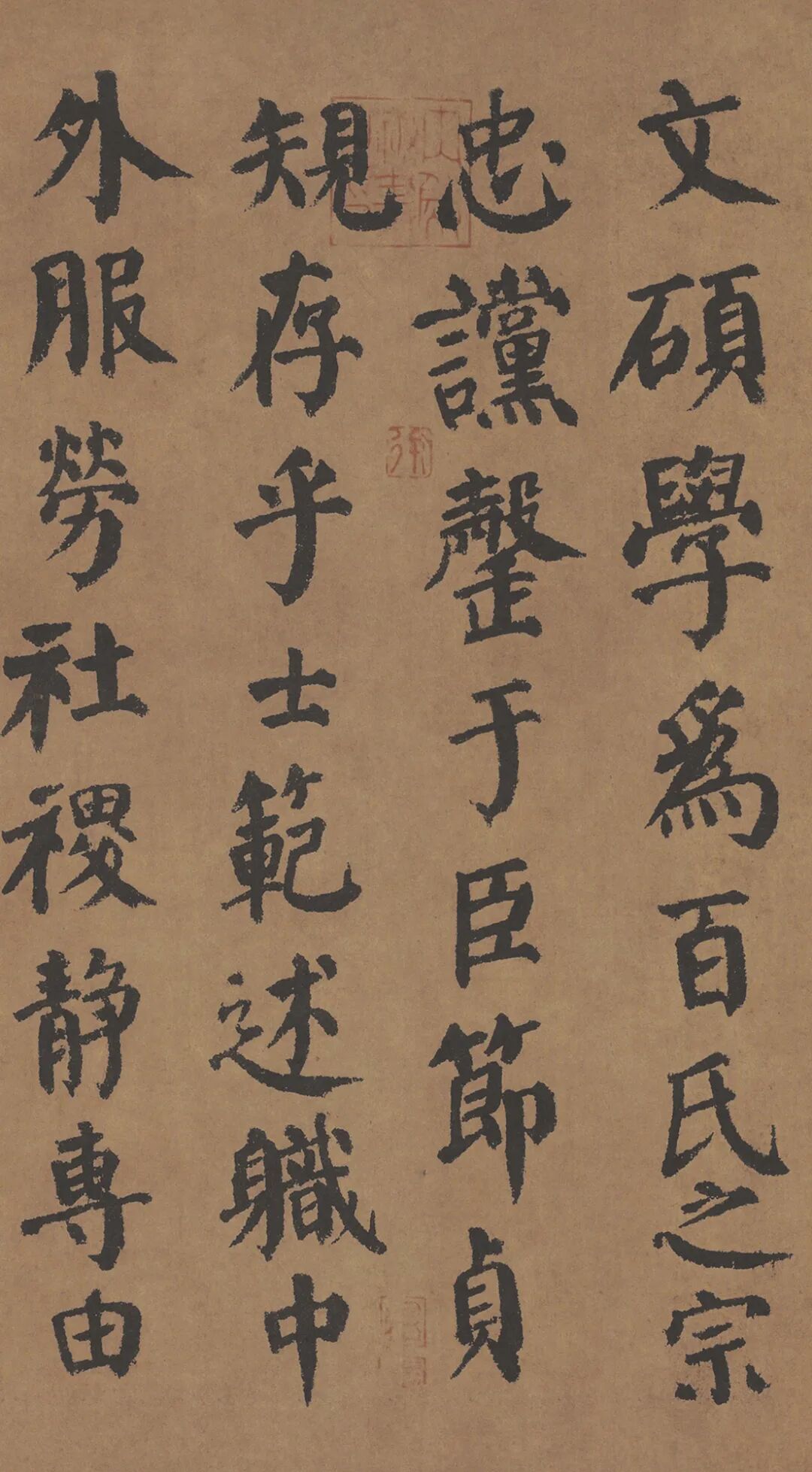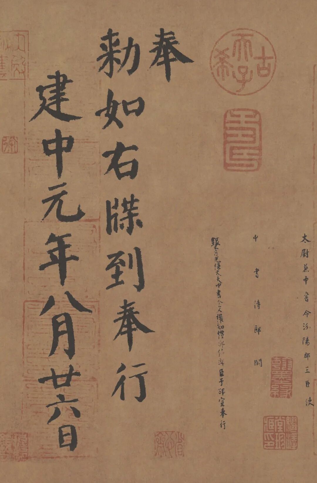 《自书告身》帖,凡33行, 计255字,结衔小字13行,全篇书风苍劲严、沉稳厚重,字里行间可体会出颜书行笔的气韵和结体的微妙变化,让后世无数大家敬佩不已。