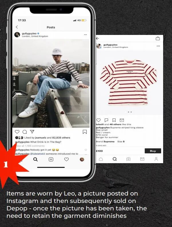 博主Leo穿戴着自己的私人衣物,精美的个人照片发布在Instagram上,然后将衣物放在Depop上出售