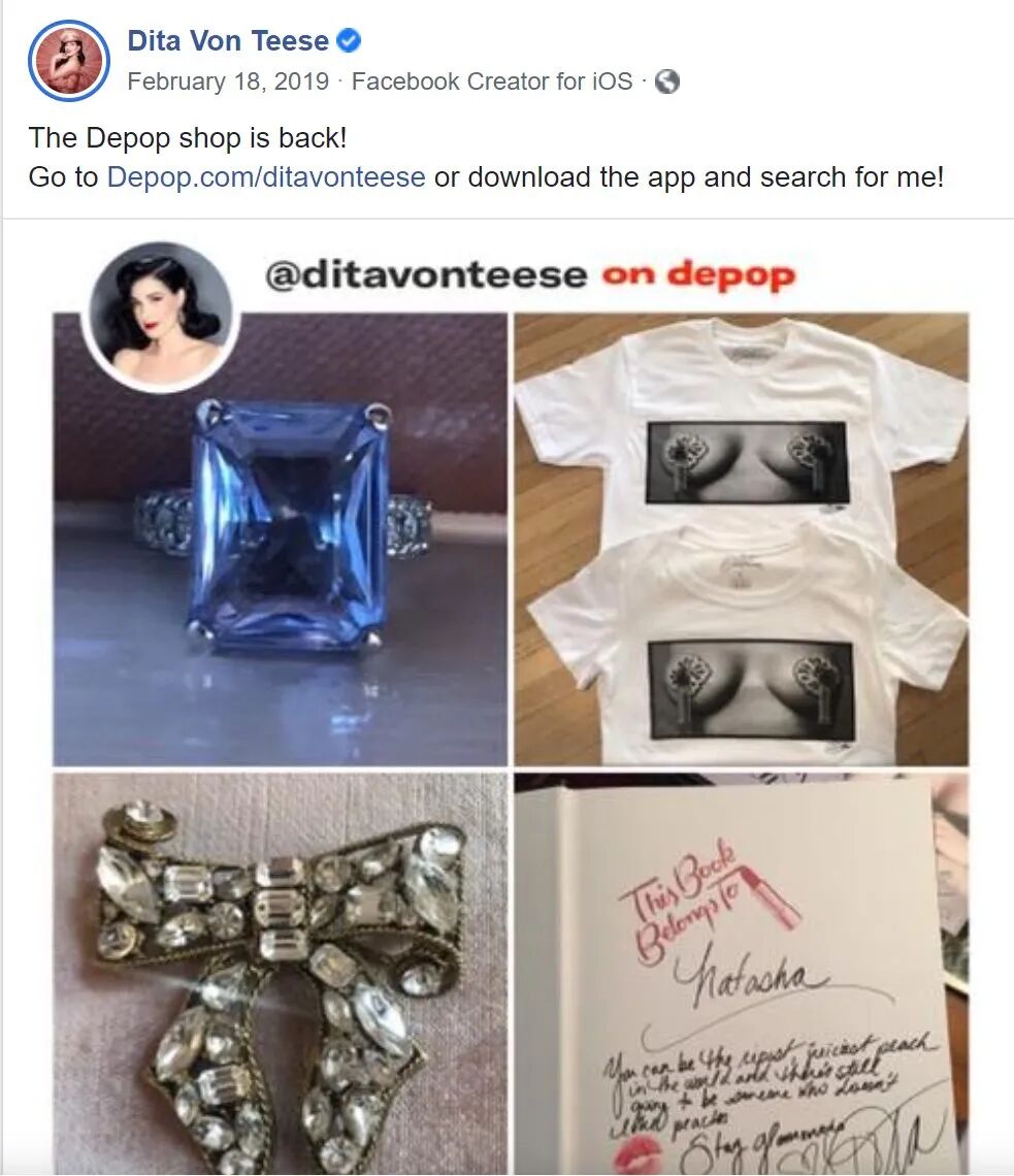 因此,在Depop的卖家中,你会看到模特 Emily Ratajkowski 和 Chiara Ferragni、权力的游戏女演员 Maisie Williams、歌手 Lily Allen 和著名舞娘Dita Von Teese 等名人的身影。