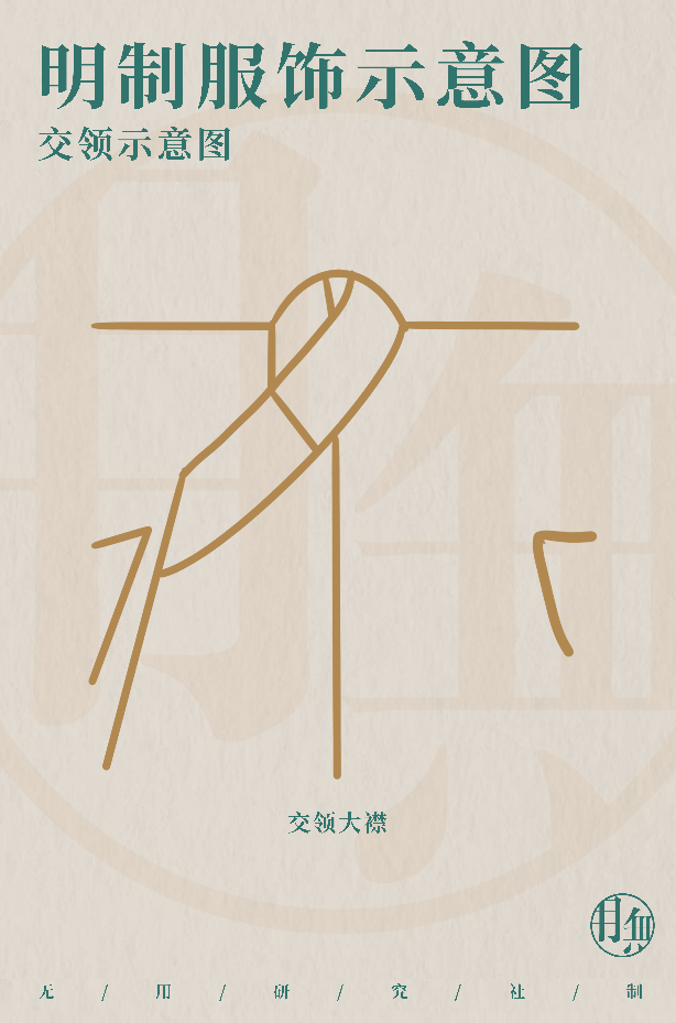 如果说汉、唐、明构成了中华民族传统服饰史的主要特征,那明朝服饰就是中国古代服饰文化的集大成者。立领,又称竖领,为明朝所独有,是明中后期的最具有代表性领形,相比于历史悠久的交领,立领又是如何在明代横空出世,并一度成为时尚圈的新宠呢?相比于交领,立领则可在脖颈初缝缀两枚纽扣,而这纽扣若是金银甚至宝石制成,用在领、襟这等最能聚焦视线的地方,不仅显得气派有面儿,还能起到熠熠生辉的点睛之笔作用。更何况如果是立领对襟衫,可是能整整缝缀七枚纽扣呢。除了纽扣,立领将颈部与背部一带更加贴身,也突出了脖颈的修长。根据出土的文物和画像来看,明立领的领襟组合形式基本上有两种。● 立领大襟:领襟边缘没有装饰,造型简洁流畅,前身一般有3-4组系带,系于腋下。●立领对襟:正中两襟对开,直通上下,一般用绳带或者纽扣系连。若用纽扣一般由三幅、五幅或者七幅纽扣闭合。明朝衣襟形制不止立领一种,尽管明初制定了严格的服饰等级制度,但在明中后期商品经济蓬勃发展,人们的许多思想观念和价值取向发生了变化。在此影响下,服饰的审美也由“明初的朴素单一、固定有序向富丽华侈和别致多样转变”,不仅服饰形制多样,衣领形制也愈加丰富。交领,是中国服饰中使用最久的一种,是汉服的标志性领形,汉字“衣”就是与交领形象演变而来。交领穿着时左右两襟交叉相叠于胸前,根据交叠方向的不同可分为左衽和右衽。●左衽:衣襟从右向左掩,北方异族崇尚左,多为少数民族之服。另外古时汉族的传统习俗,死者之服(寿衣)用左衽,不用布钮,而是使用细布带系死结,以示阴阳有别。●右衽:衣襟由左向右掩,华夏崇尚右,古时多见于汉族之服。在明初期,部分容像中有保持金元以来少数民族的左衽的形式,而在明代中后期左衽的形式逐渐摒弃,交领形制服饰都是右衽。绿地织金纱翔凤纹短衫 明 孔子博物馆藏