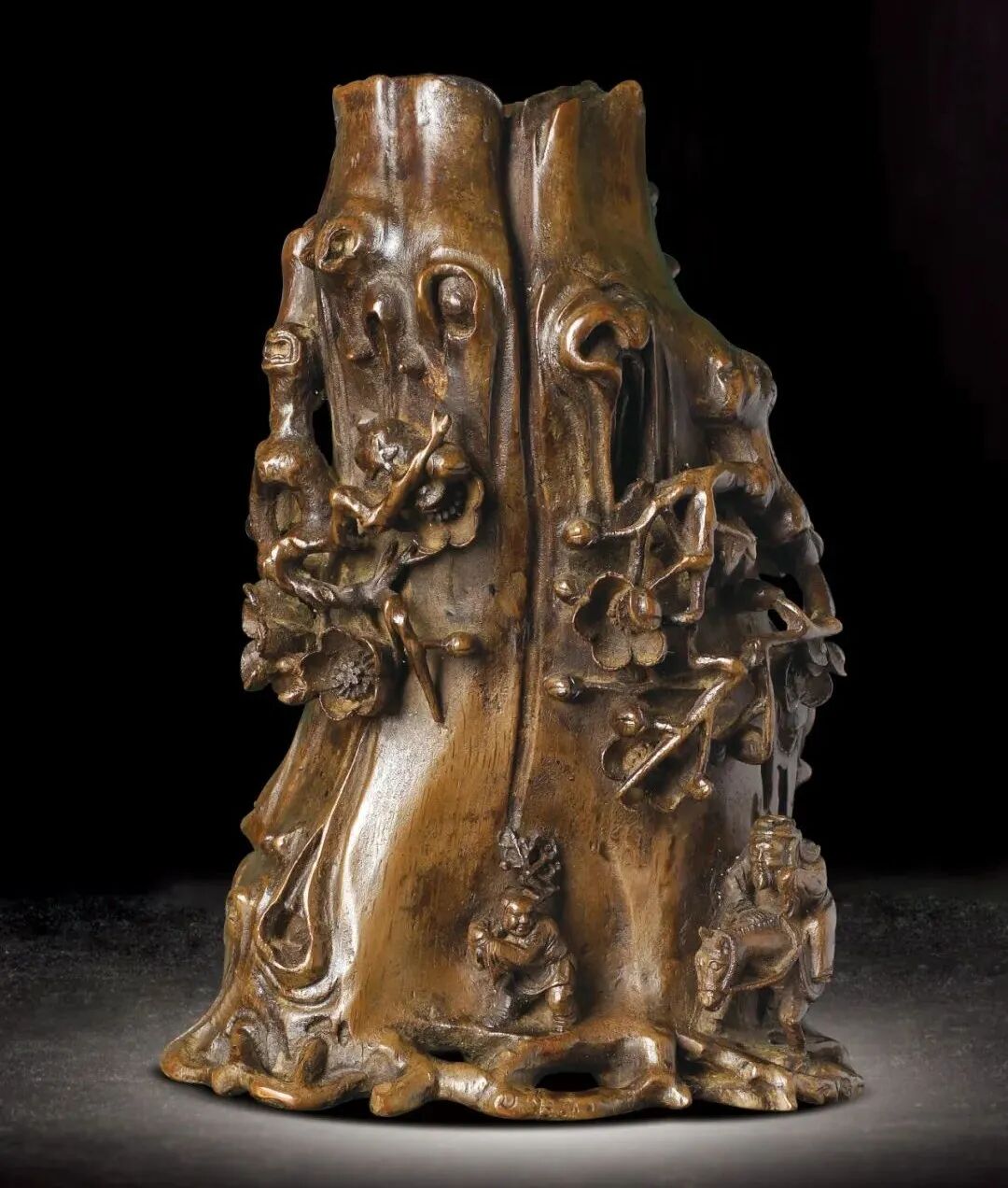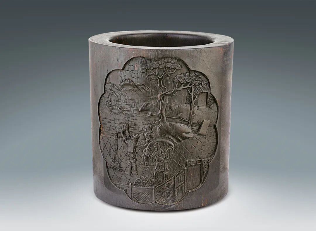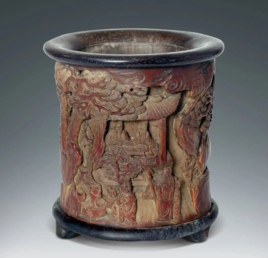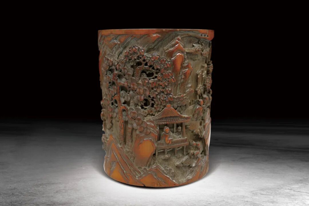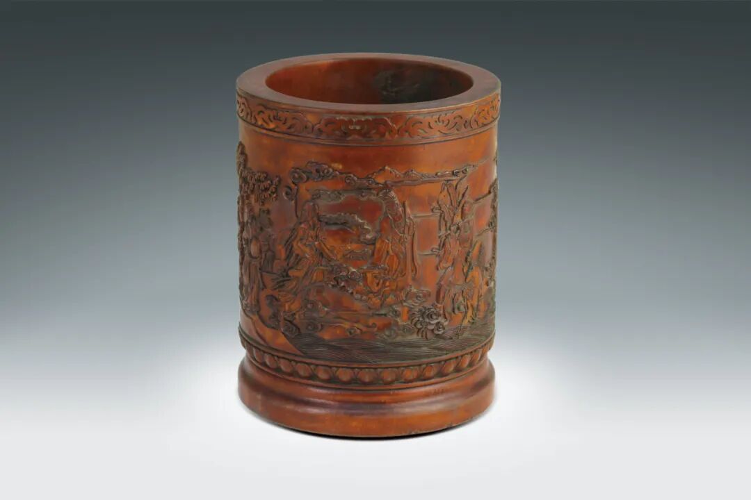 161 清 竹雕踏雪尋梅圖筆筒