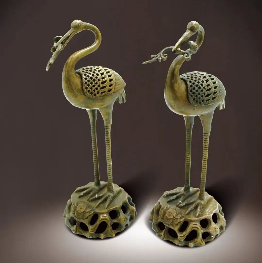 196 清末 銅雕王羲之戲鵝擺件