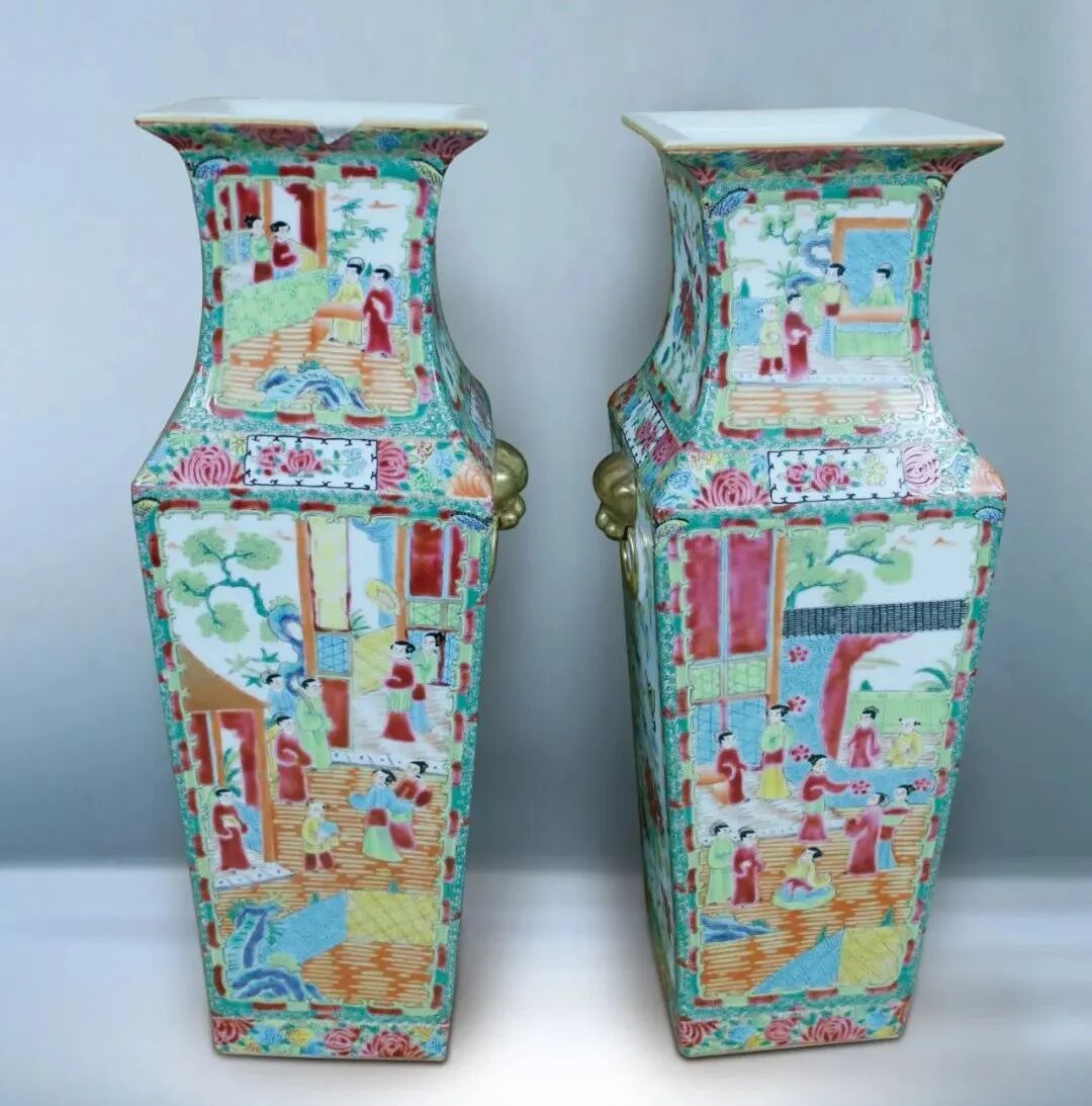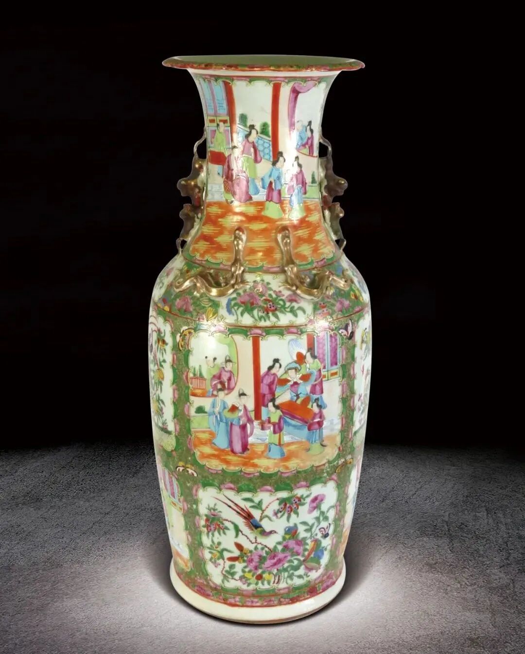 8 清 廣彩開光人物瑞獸耳瓶