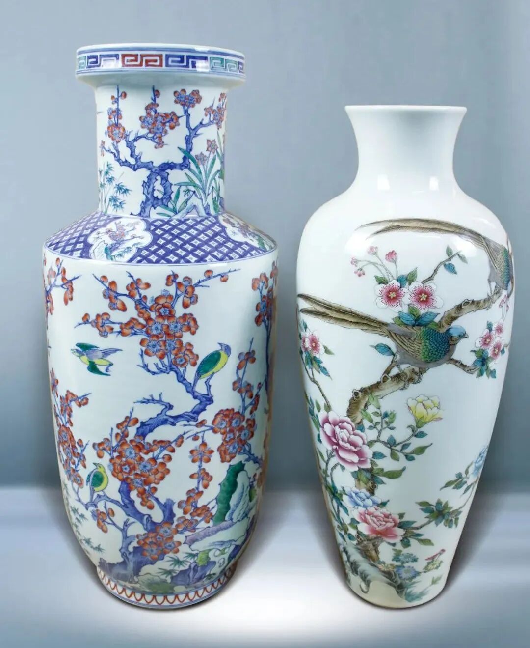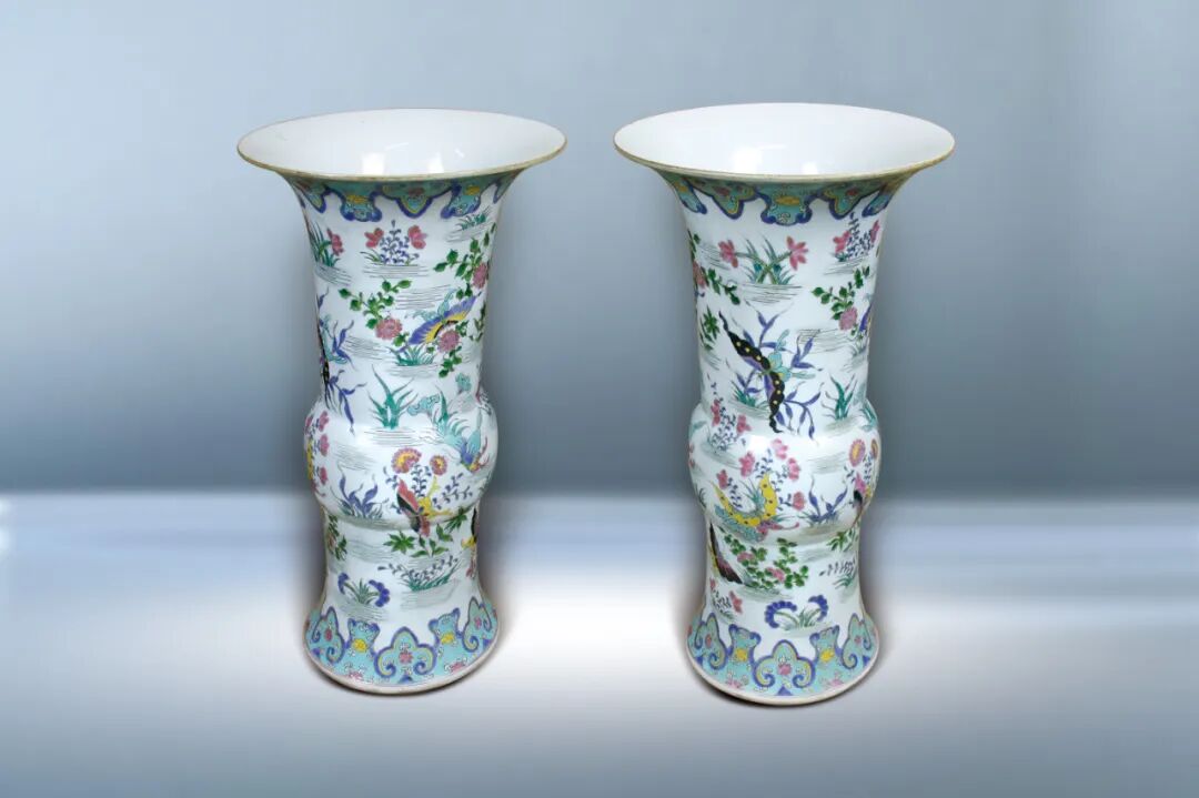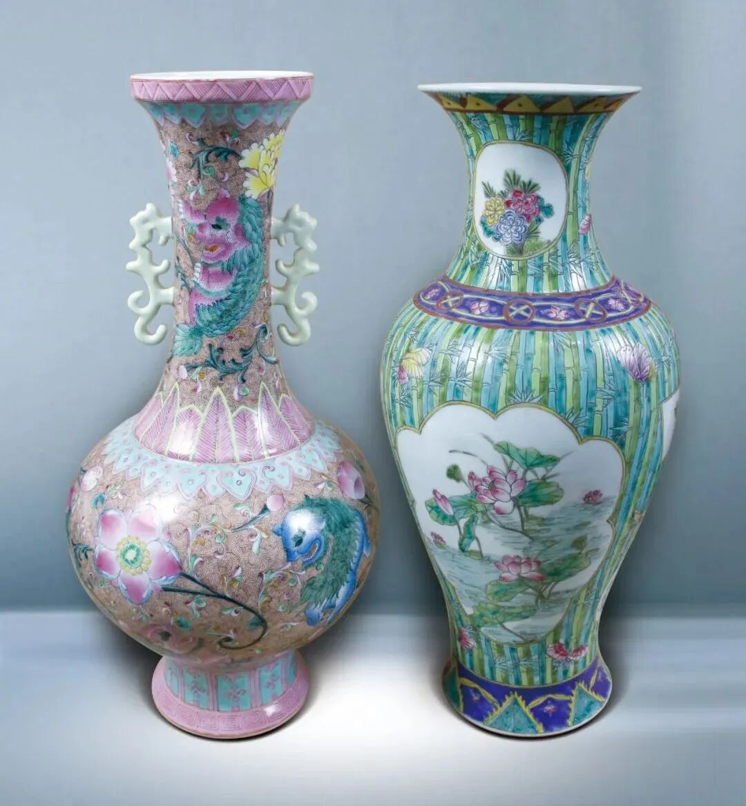 25 鬥彩、粉彩花鳥瓶二只