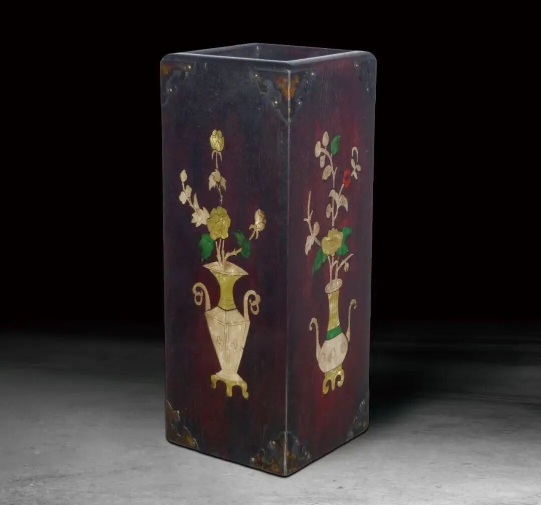 157 紅木鑲貝四方筆筒