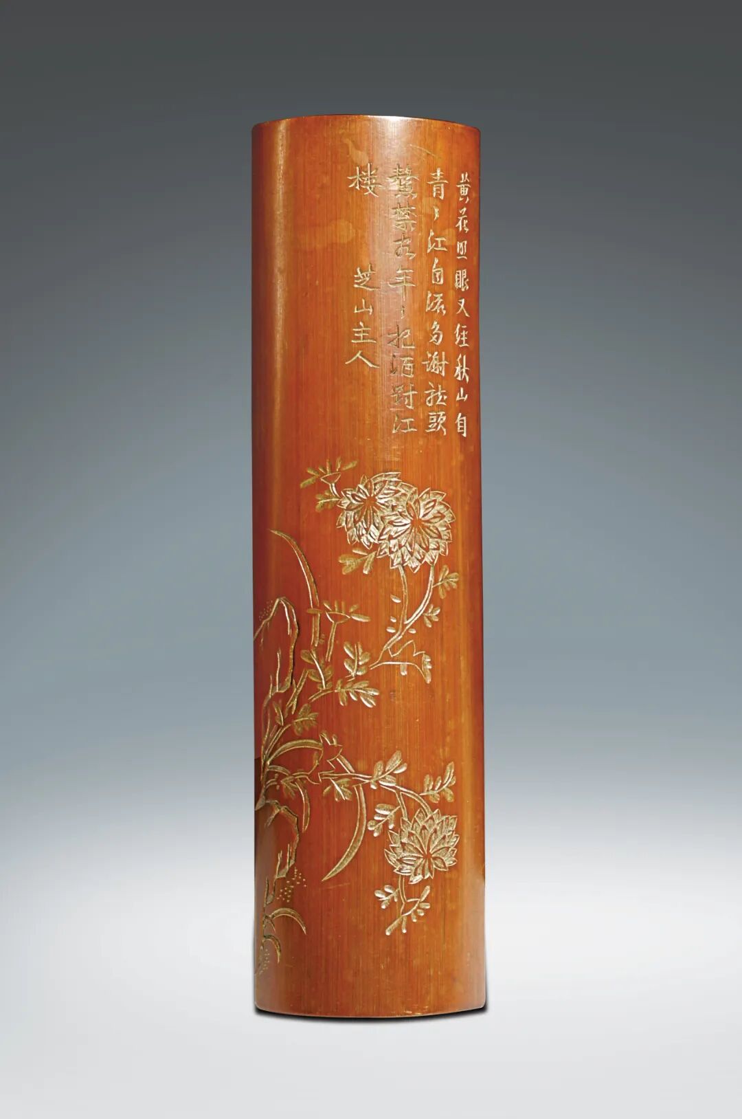 159 清 竹雕黃花照眼圖臂擱