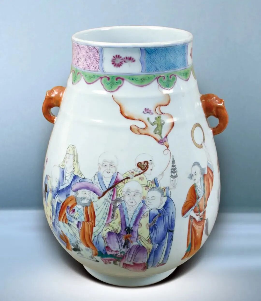 35 粉彩羅漢象耳尊