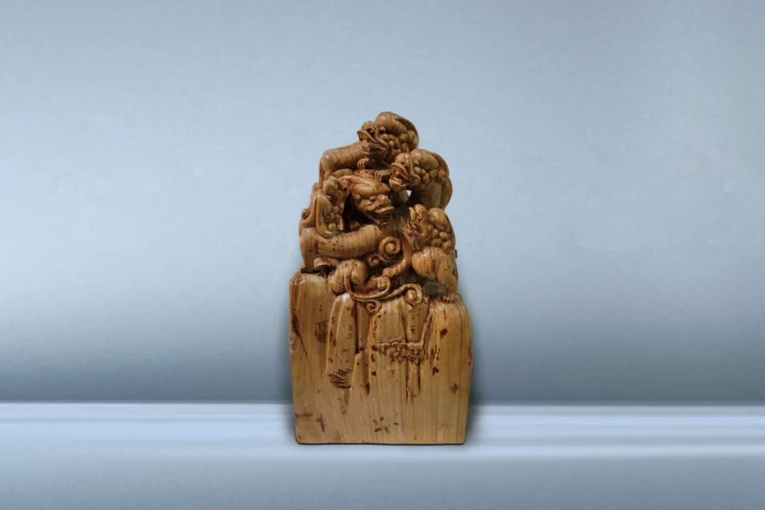 164 花梨木雕五龍紐方章
