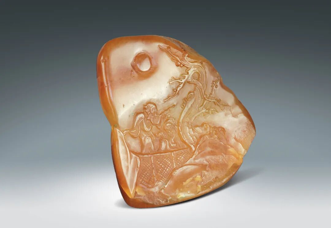 148 民國 田黃石雕月下高隱圖薄意擺件