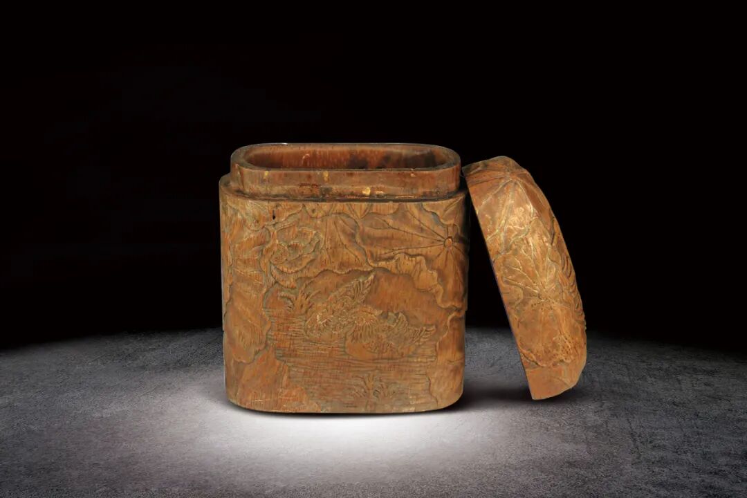 171 清 竹雕鴛鴦戲水荷趣紋盒