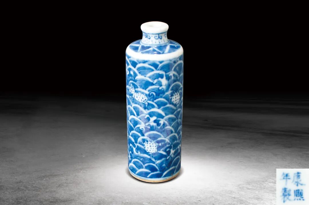 192 清 青花海水紋鼻煙壺